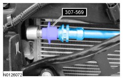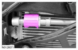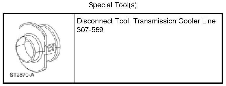 7. Using the Transmission Cooler Line Disconnect Tool, disconnect the transmission cooler outlet line fitting.