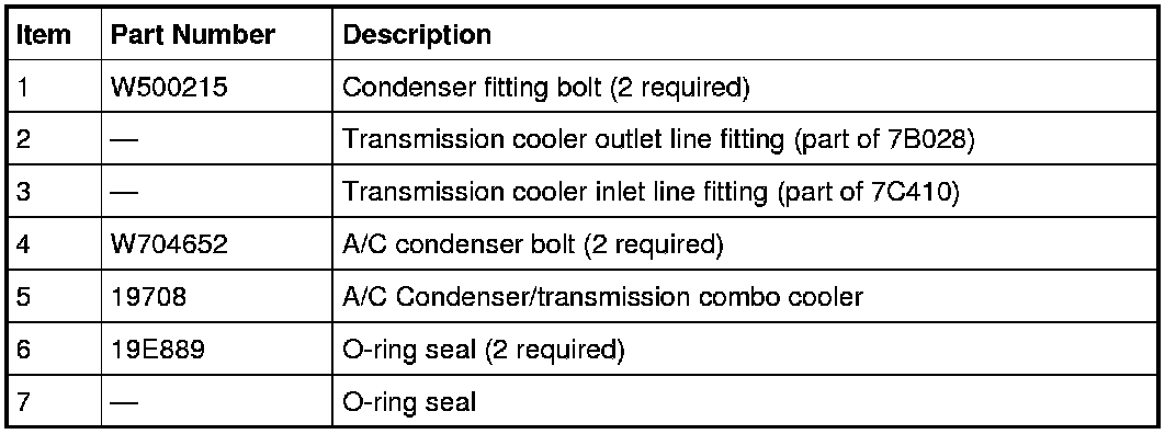 NOTE: The O-ring seals used on this vehicle are not interchangeable with all similarly sized O-ring seals used on other Ford products. Use only the O-ring seals specified for this vehicle.