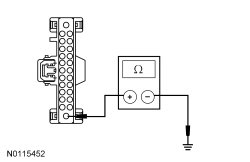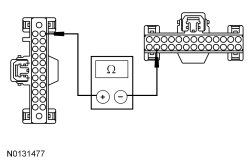 - Measure the resistance between the ACM (Audio Front Control Module) C240A-13, circuit GD114 (BK/BU), harness side and ground.