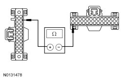 - Measure the resistance between the ACM (Audio Front Control Module) C240A-14, circuit VDB13 (BU/GY), harness side and the IPC (Instrument Panel Cluster) C220-25, circuit VDB13 (BU/GY), harness side.