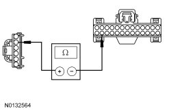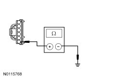 - Measure the resistance between the FCIM (Front Controls Interface Module) C2402-6, circuit GD115 (BK/GY), harness side and ground.