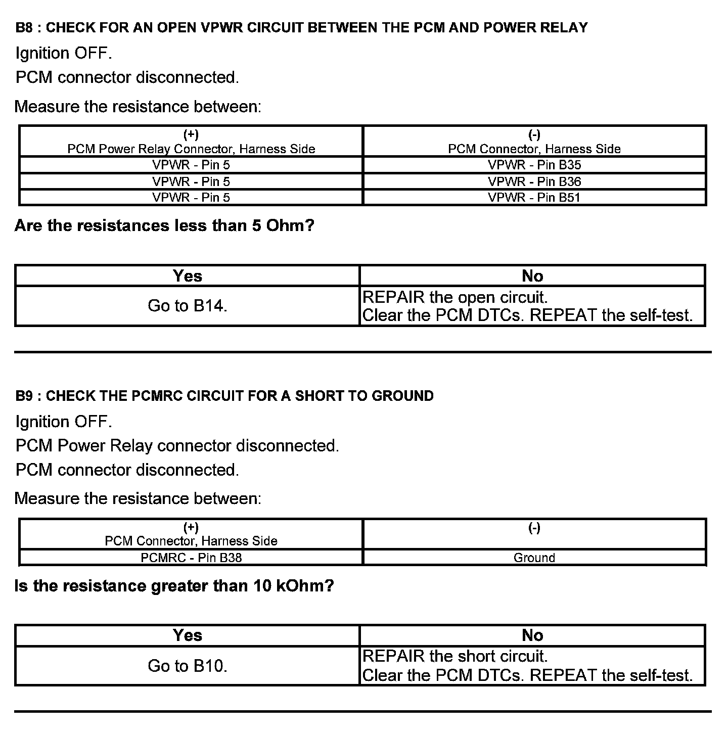 Test B: Powertrain Control Module (PCM) Power Relay