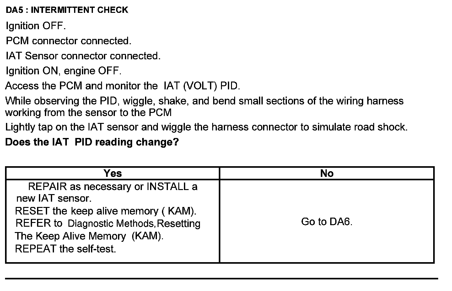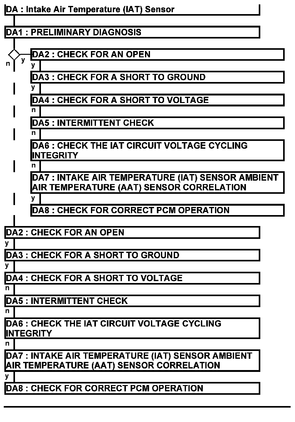 Home >> Ford >> 2012 >> Edge AWD V6-3.5L >> Repair and Diagnosis >> Powertrain Management >> Computers and Control Systems >> Testing and Inspection >> Pinpoint Tests >> Test DA: Intake Air Temperature (IAT) Sensor