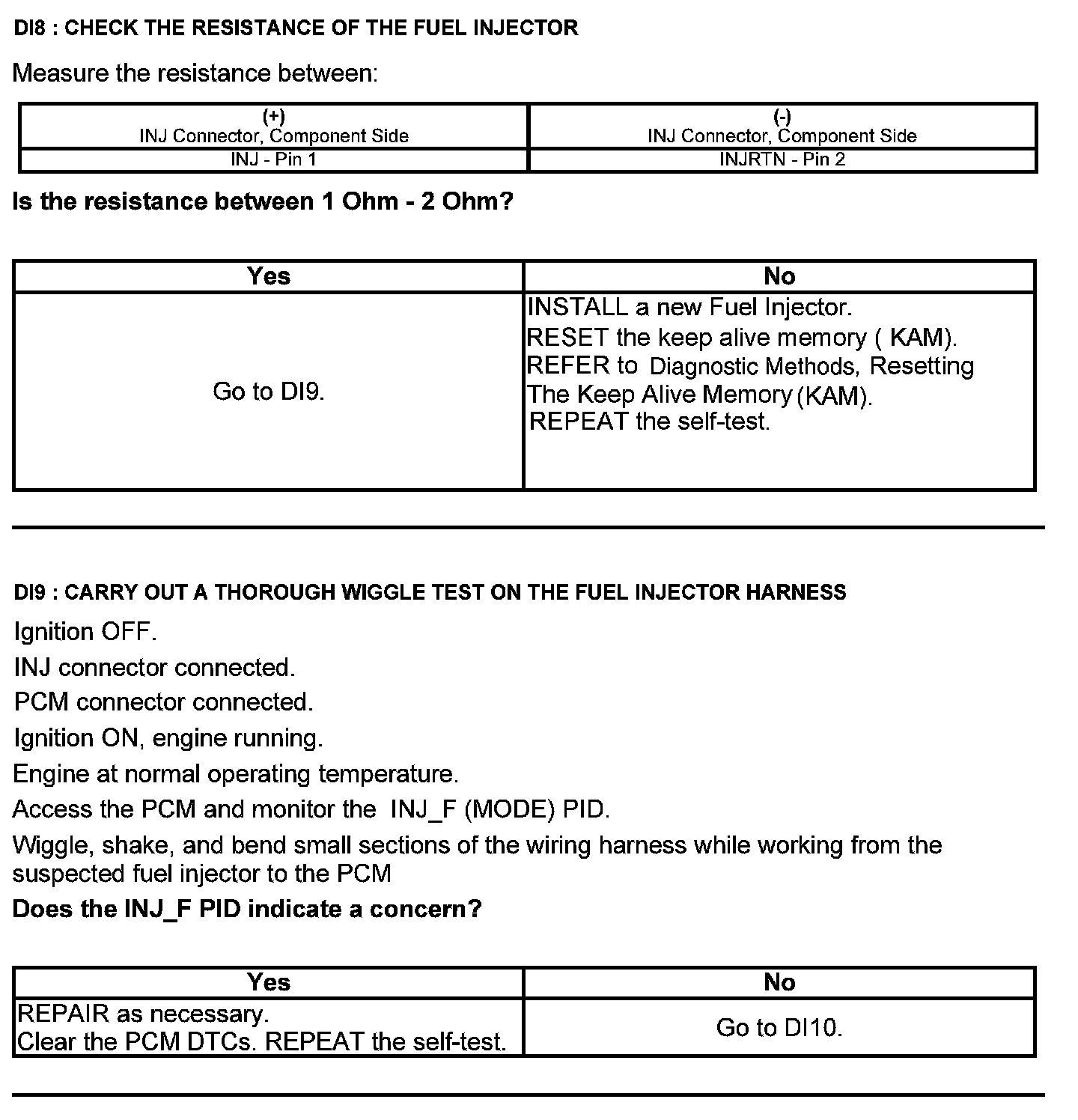 Test DI: Direct Fuel Injection Fuel Injector