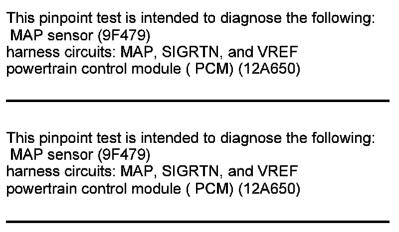 Home >> Ford >> 2012 >> Edge AWD V6-3.5L >> Repair and Diagnosis >> Powertrain Management >> Computers and Control Systems >> Testing and Inspection >> Pinpoint Tests >> Test DM: Manifold Absolute Pressure (MAP) Sensor