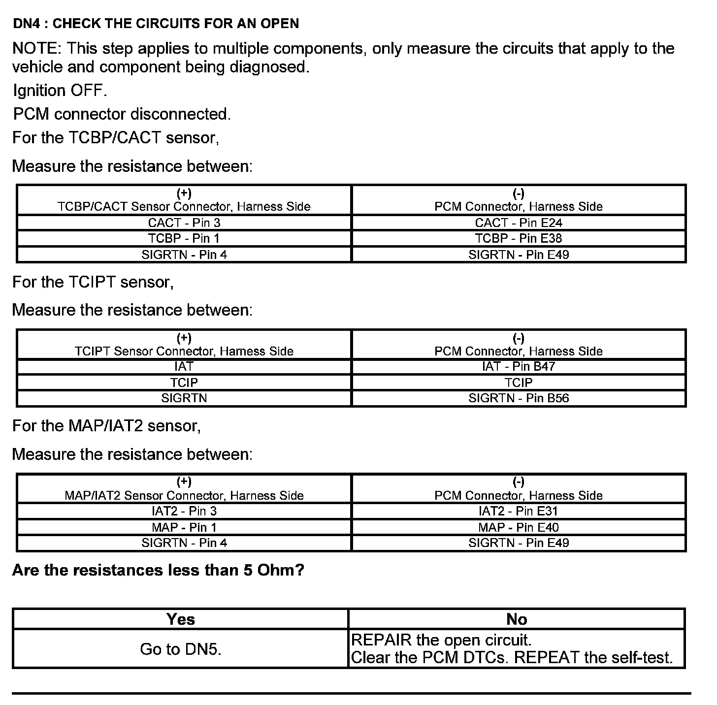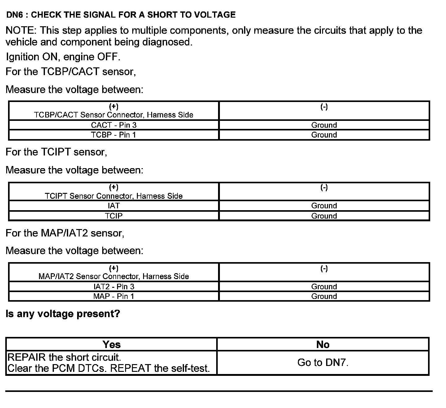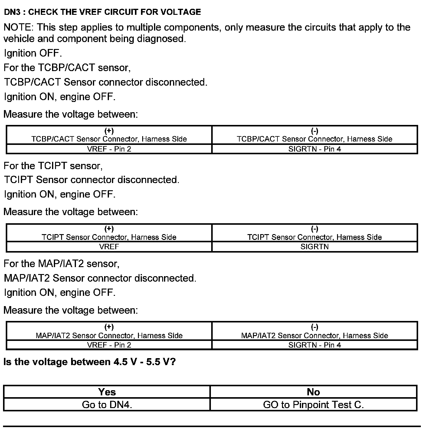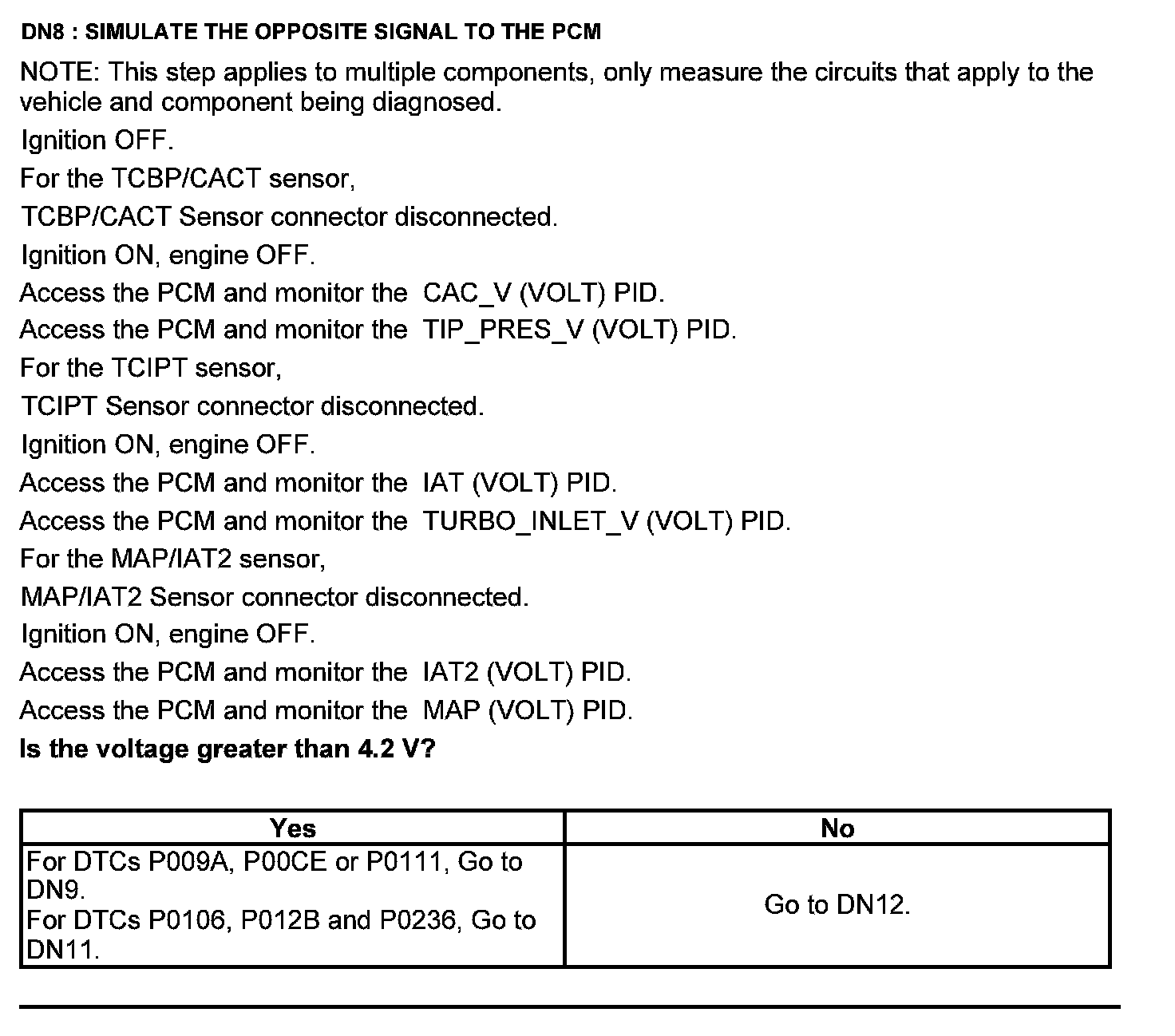Home >> Ford >> 2012 >> Edge AWD V6-3.5L >> Repair and Diagnosis >> Powertrain Management >> Computers and Control Systems >> Testing and Inspection >> Pinpoint Tests >> Test DN: Pressure and Temperature Sensors