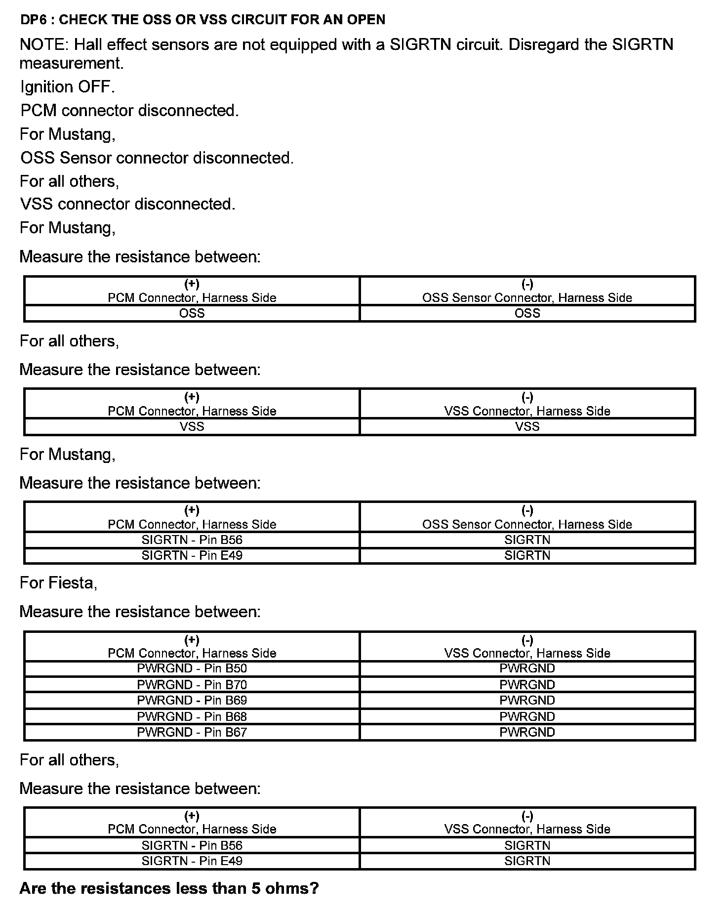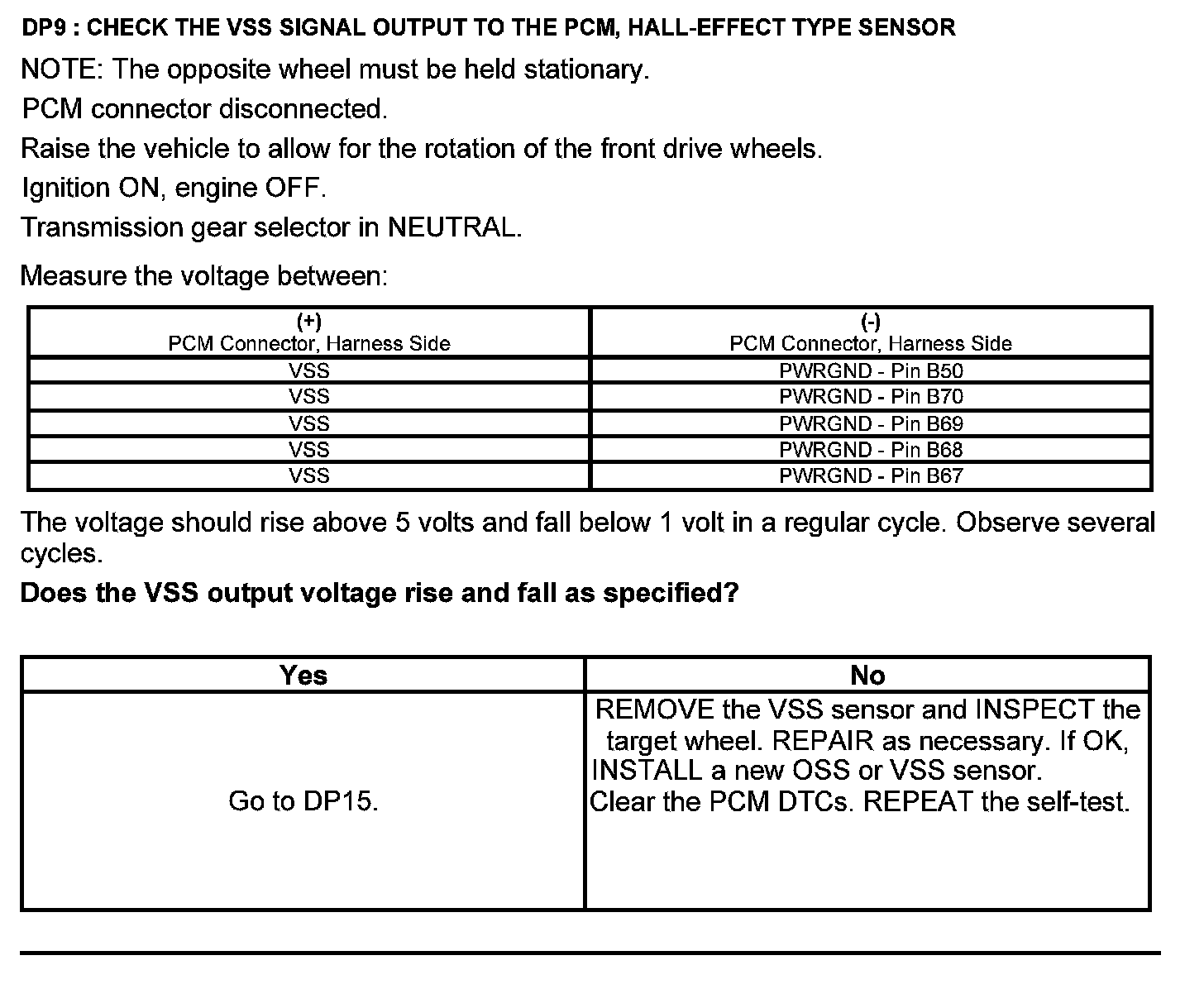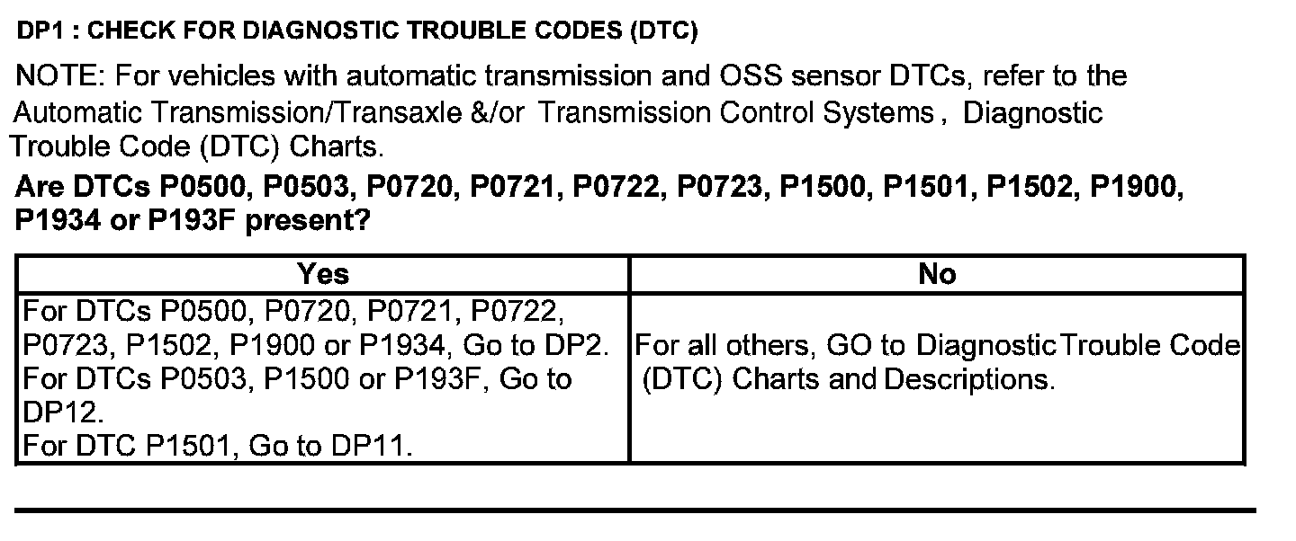 Test DP: Output Shaft Speed (OSS) Sensor/Vehicle Speed Sensor ( VSS)