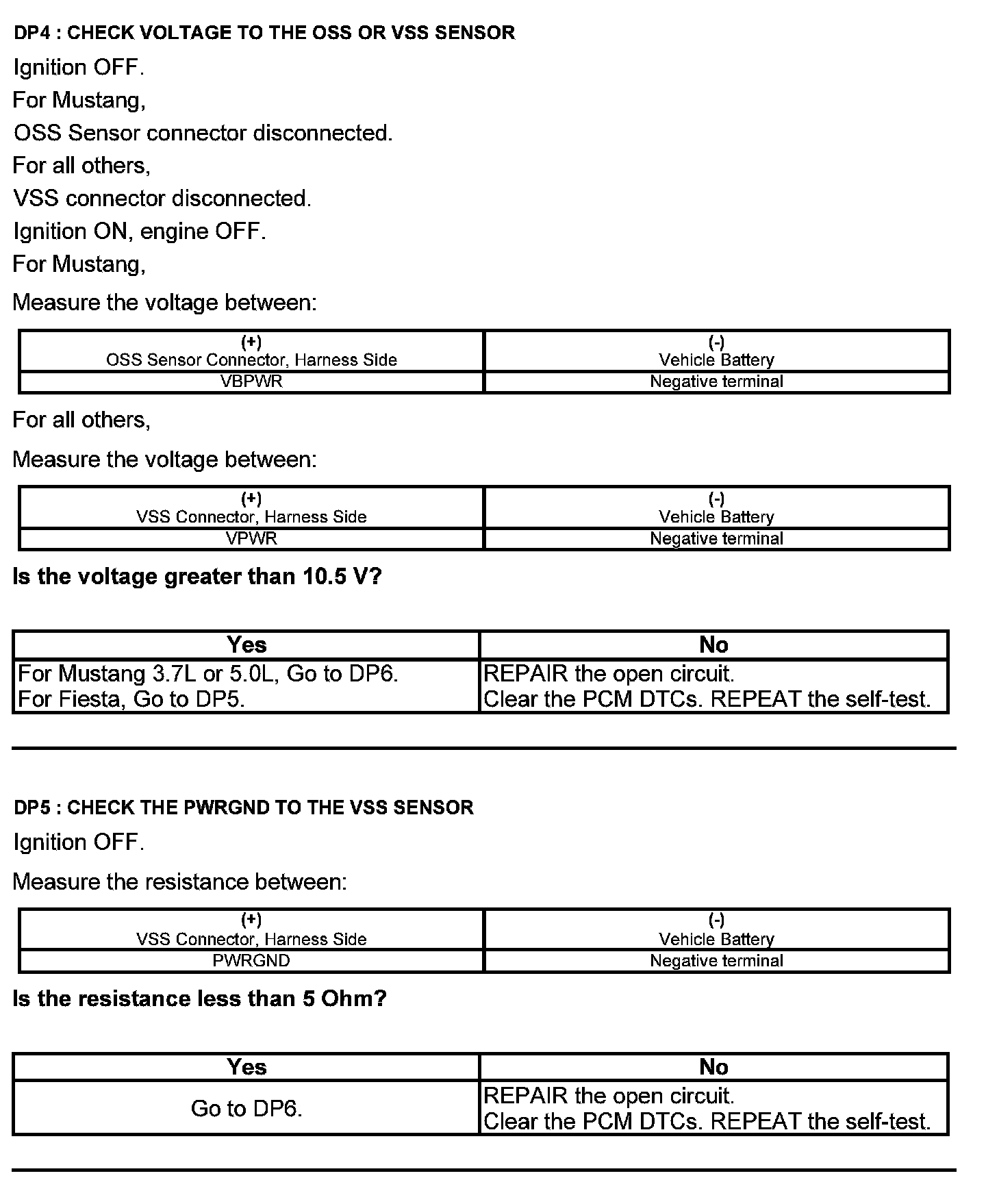 Home >> Ford >> 2012 >> Edge AWD V6-3.5L >> Repair and Diagnosis >> Powertrain Management >> Computers and Control Systems >> Testing and Inspection >> Pinpoint Tests >> Test DP: Output Shaft Speed (OSS) Sensor/Vehicle Speed Sensor ( VSS)
