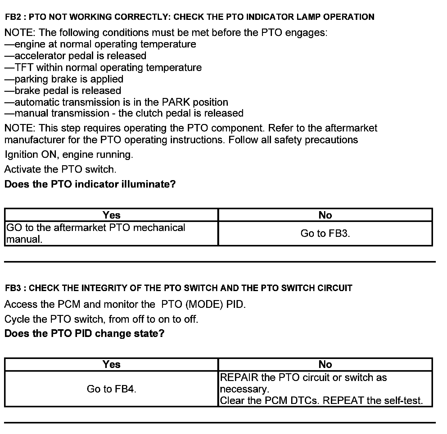 Test FB: Power Take Off (PTO)