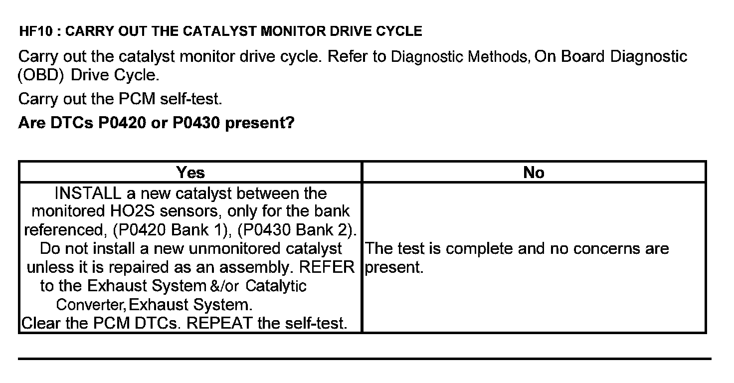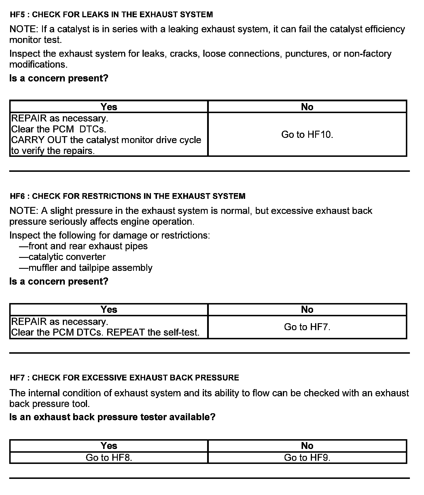 Test HF: Catalyst Efficiency Monitor and Exhaust Systems