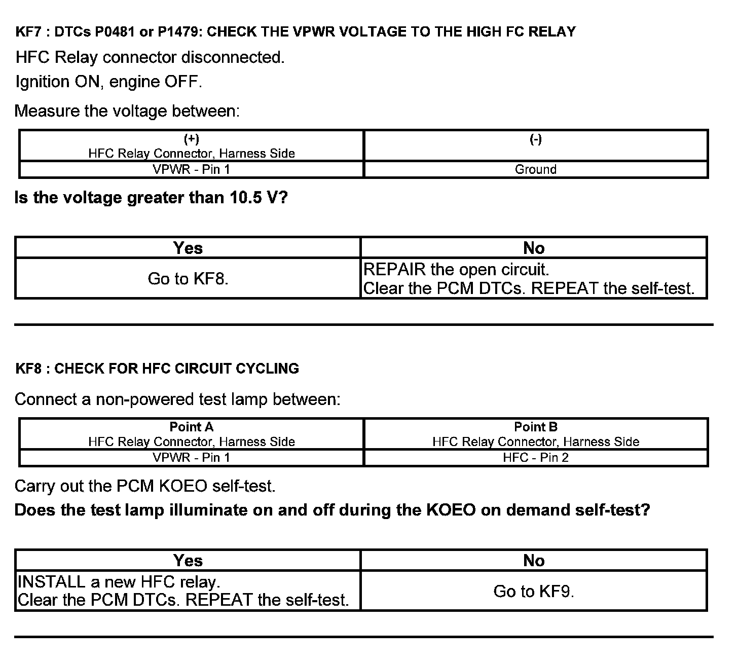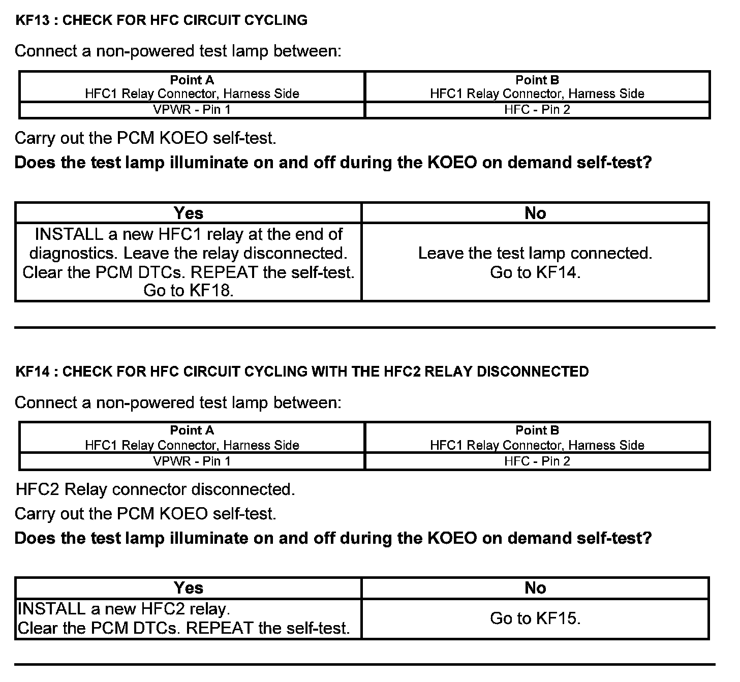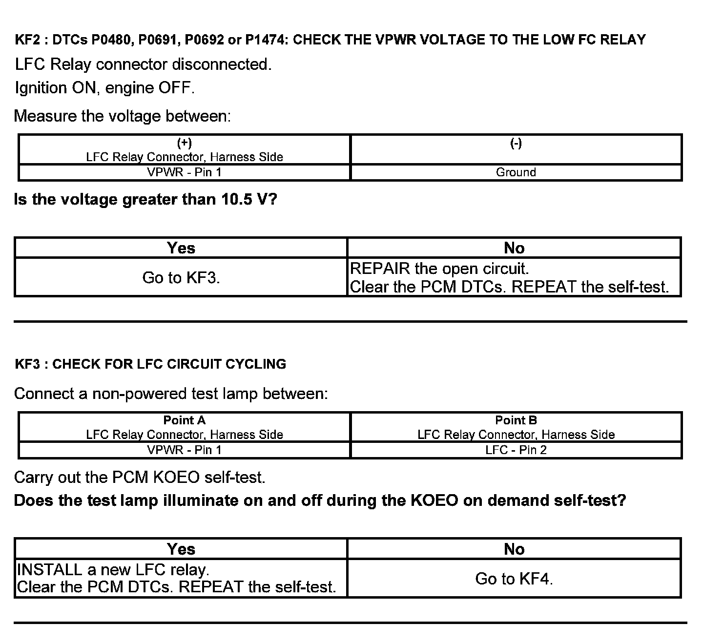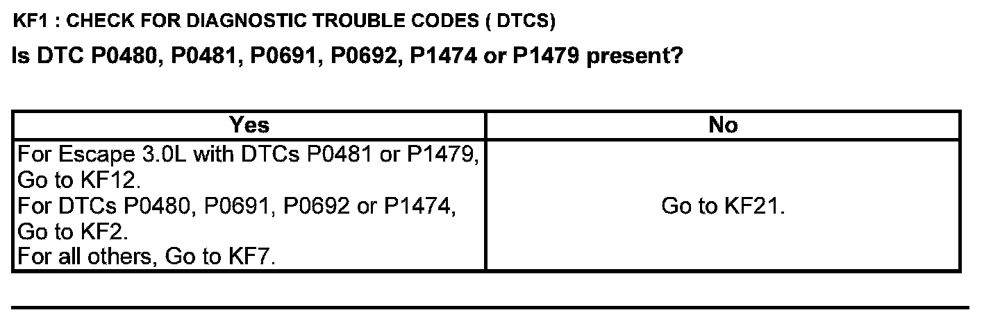 Home >> Ford >> 2012 >> Edge AWD V6-3.5L >> Repair and Diagnosis >> Powertrain Management >> Computers and Control Systems >> Testing and Inspection >> Pinpoint Tests >> Test KF: Fan Control Relays