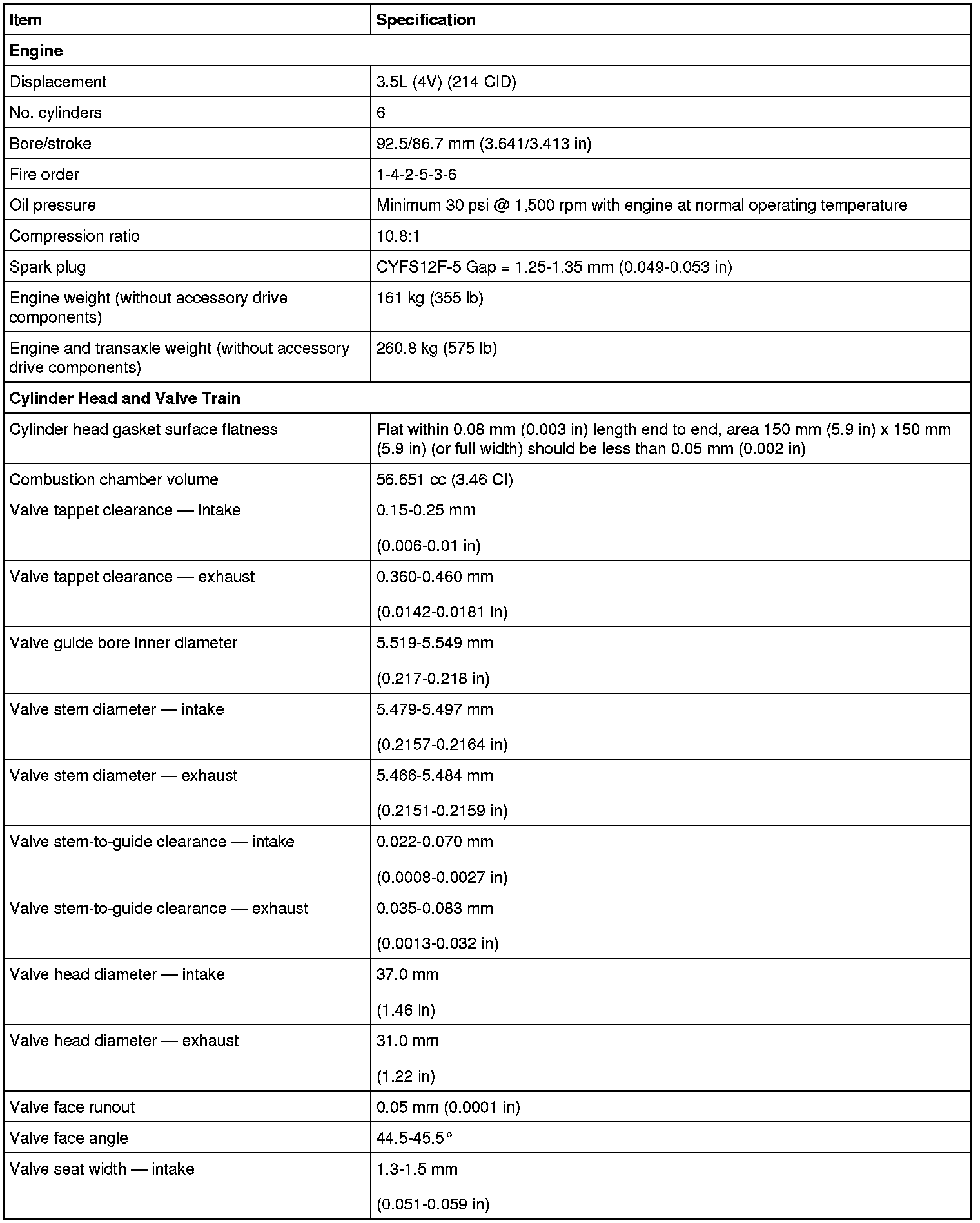 Home >> Ford >> 2012 >> Edge AWD V6-3.5L >> Repair and Diagnosis >> Specifications >> Mechanical Specifications >> Engine >> System Specifications