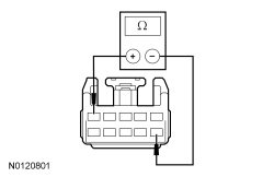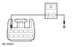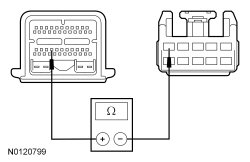 - Measure the resistance between floor shifter harness C3245-5, circuit CET34 (BN/GN) and ground.