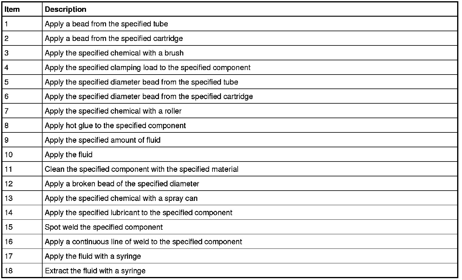 The apply chemicals, lubricants or clamping load symbols are used to direct the application of chemicals, lubricants, or loads for the procedure.