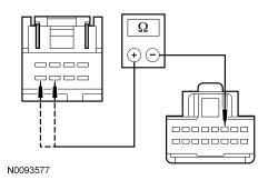 - LH exterior mirror: Measure the resistance between exterior mirror control switch C527-5, circuit CPM17 (BU/GN), harness side and LH exterior mirror C516-2, circuit CPM17 (BU/GN), harness side.