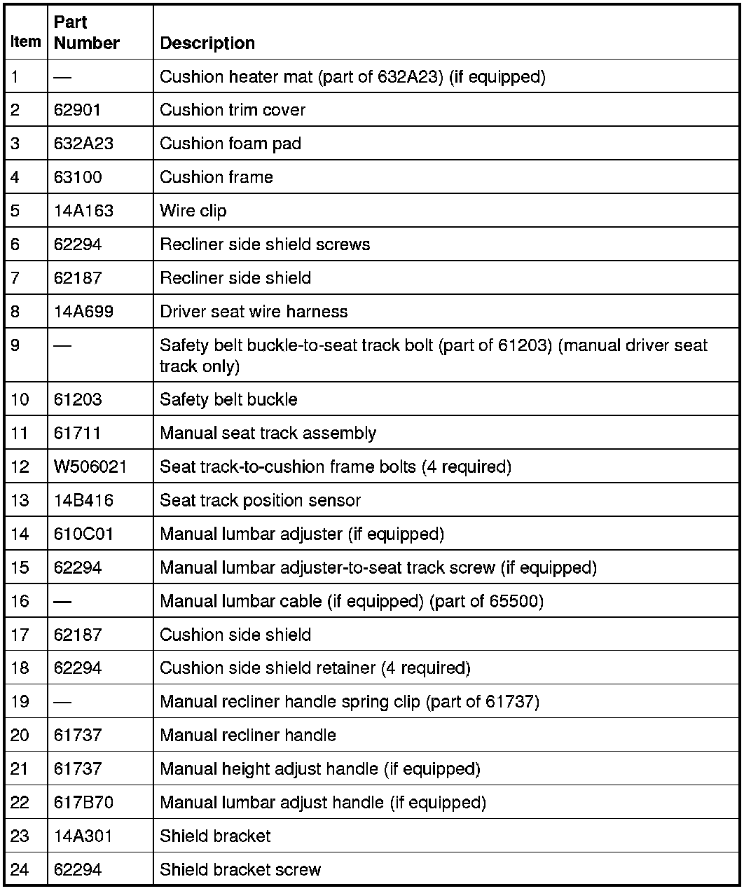 NOTE: To install a new Occupant Classification System Module (OCSM) or an Occupant Classification Sensor (OCS) weight sensor bolt, refer to the appropriate procedure in Restraints and Safety Systems &/or Air Bag Systems.