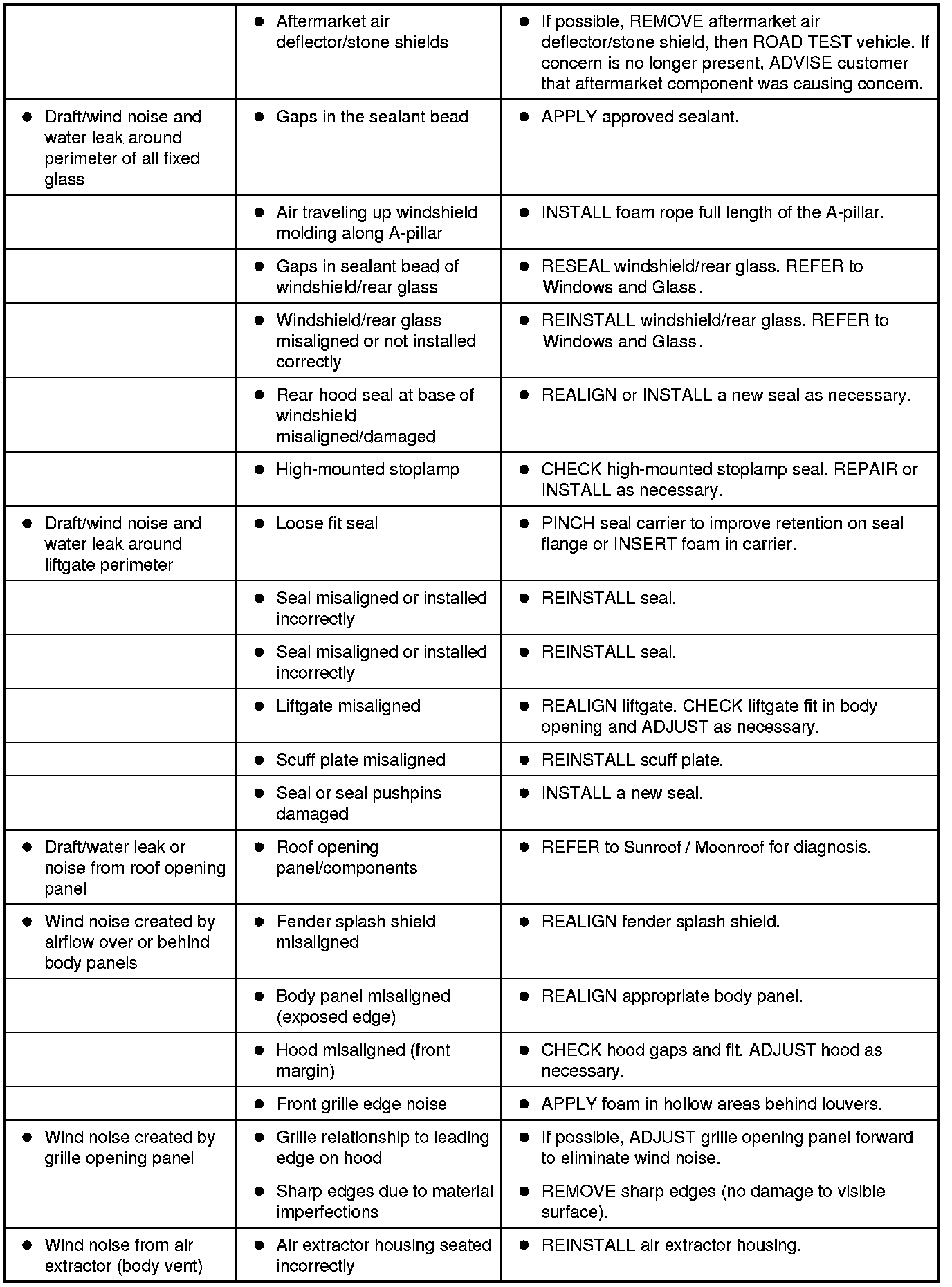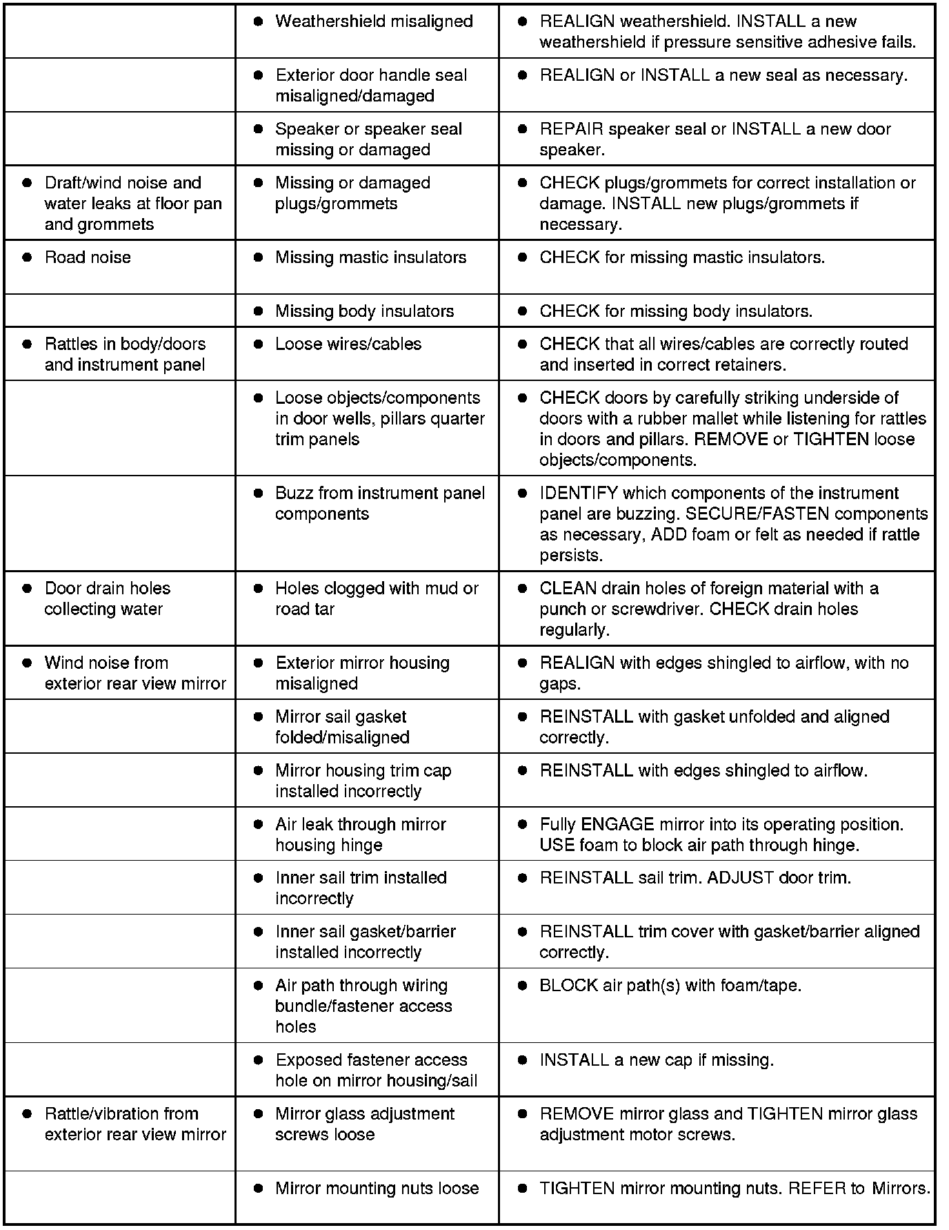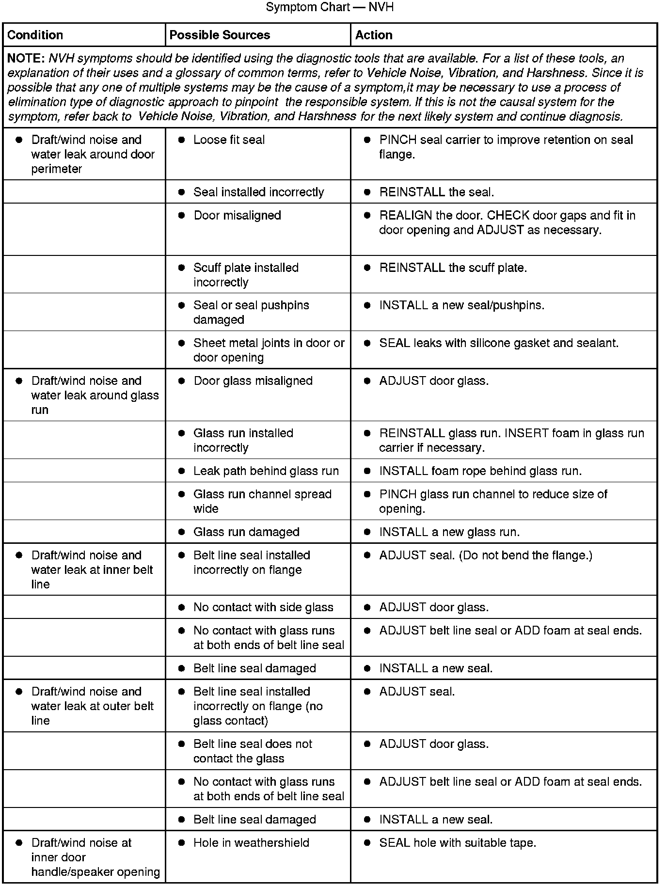 Symptom Chart - NVH