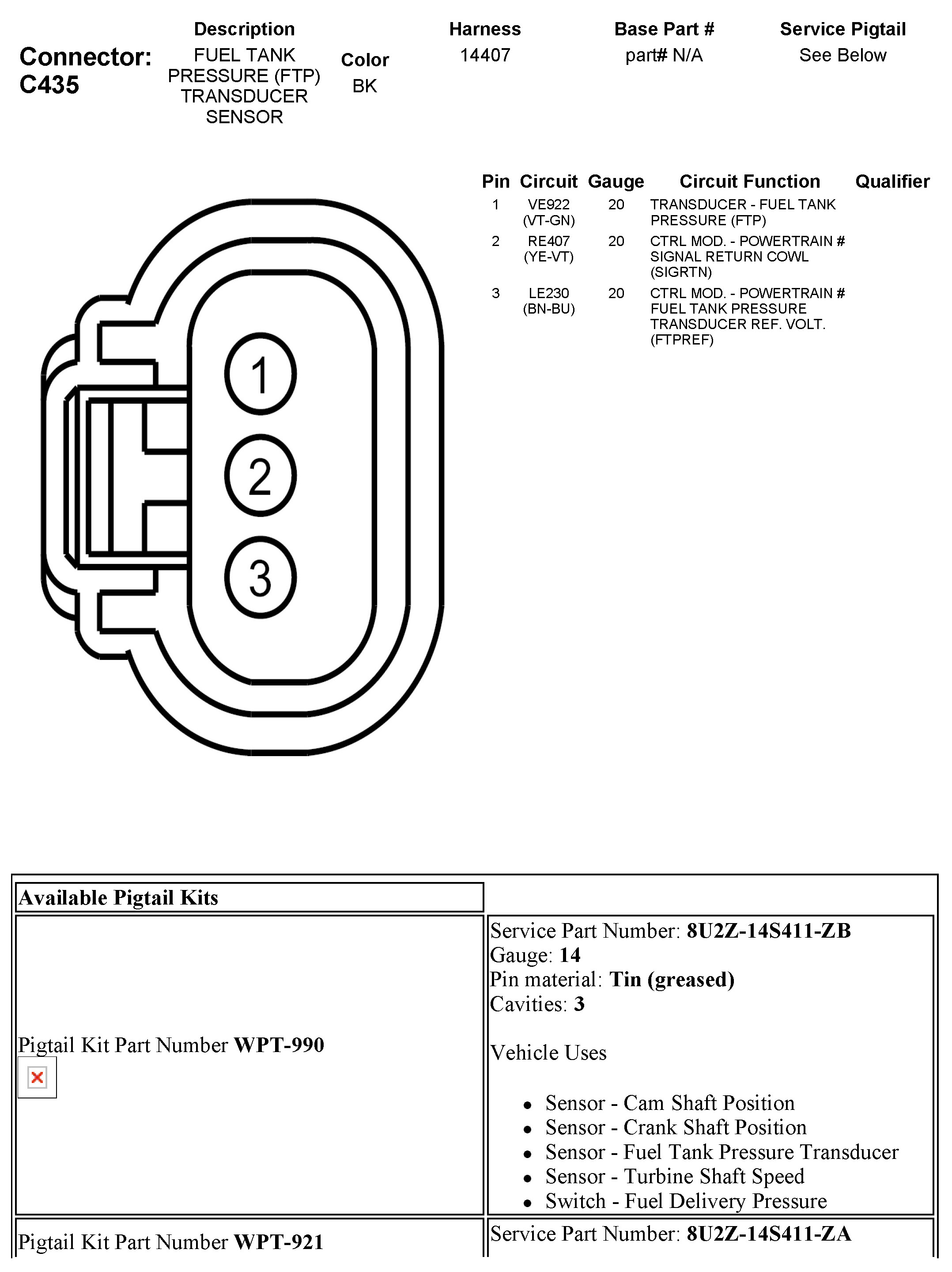 C435 Fuel Tank Pressure (FTP) Transducer Sensor