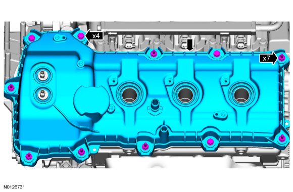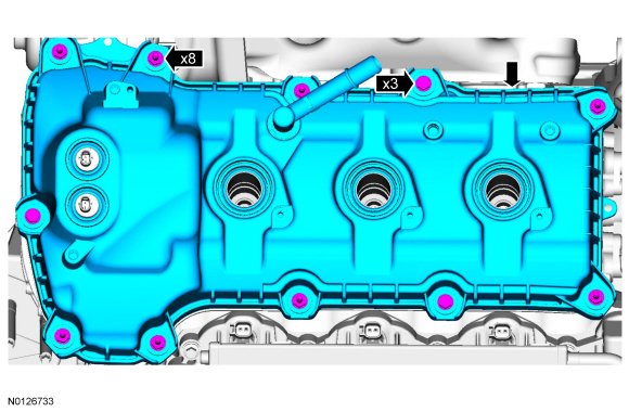 74. NOTICE: While removing the valve cover do not apply excessive force to the Variable Camshaft Timing (VCT) oil control solenoid or damage may occur.