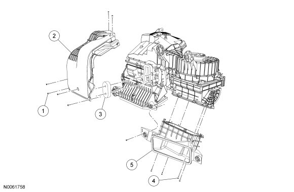 1. Remove the heater core and evaporator core housing. For additional information, refer to Heater Core And Evaporator Core Housing .