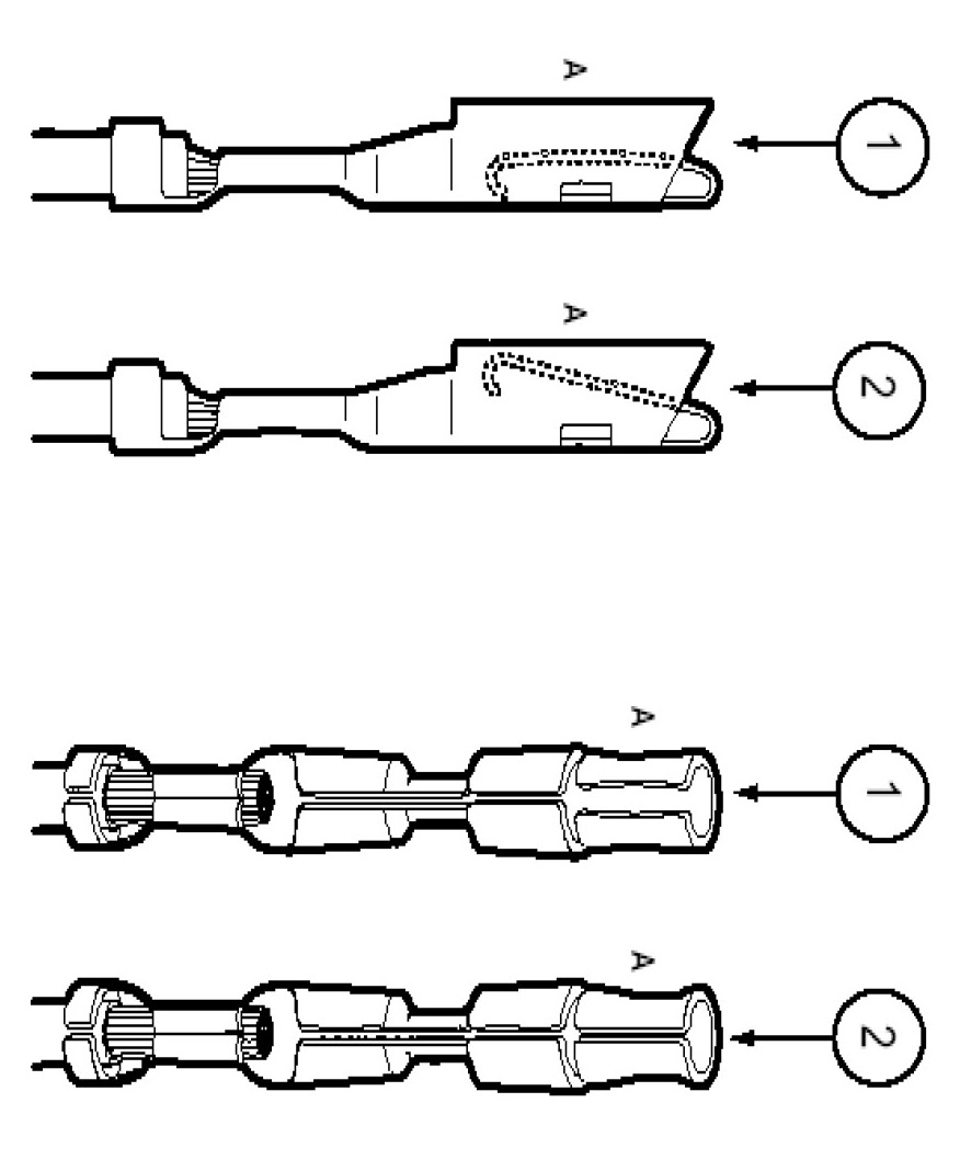 - Use heat shrinkable tubes marked with ES-1 (16-22 GA) or ES-2 (10-18 GA) to seat wire splice.