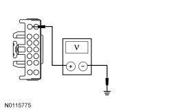 - Measure the voltage between the HSWM (Heated Steering Wheel Module) C2406-1, circuit CBP36 (BU/BN), harness side and ground.
