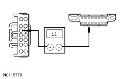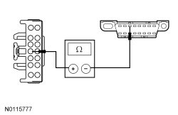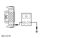 - Measure the resistance between the HSWM (Heated Steering Wheel Module) C2406-14, circuit GD115 (BK/GY), harness side and ground.