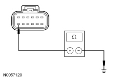 - Measure the resistance between the DCSM (Dual Climate Controlled Seat Module) C3036A-M, circuit GD145 (BK/BU), harness side and ground.