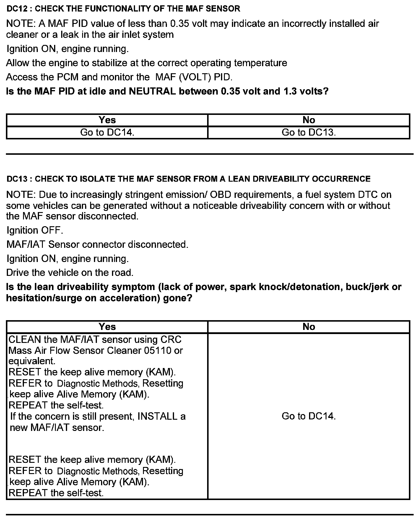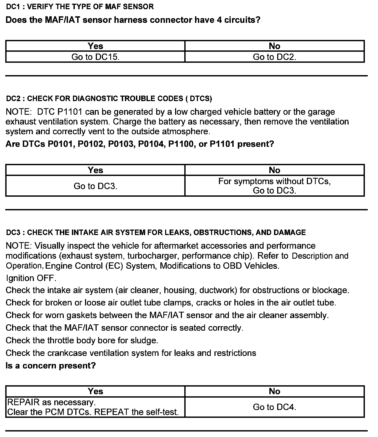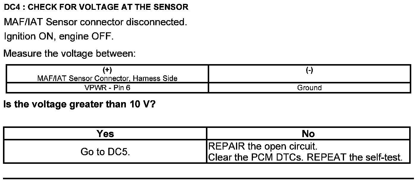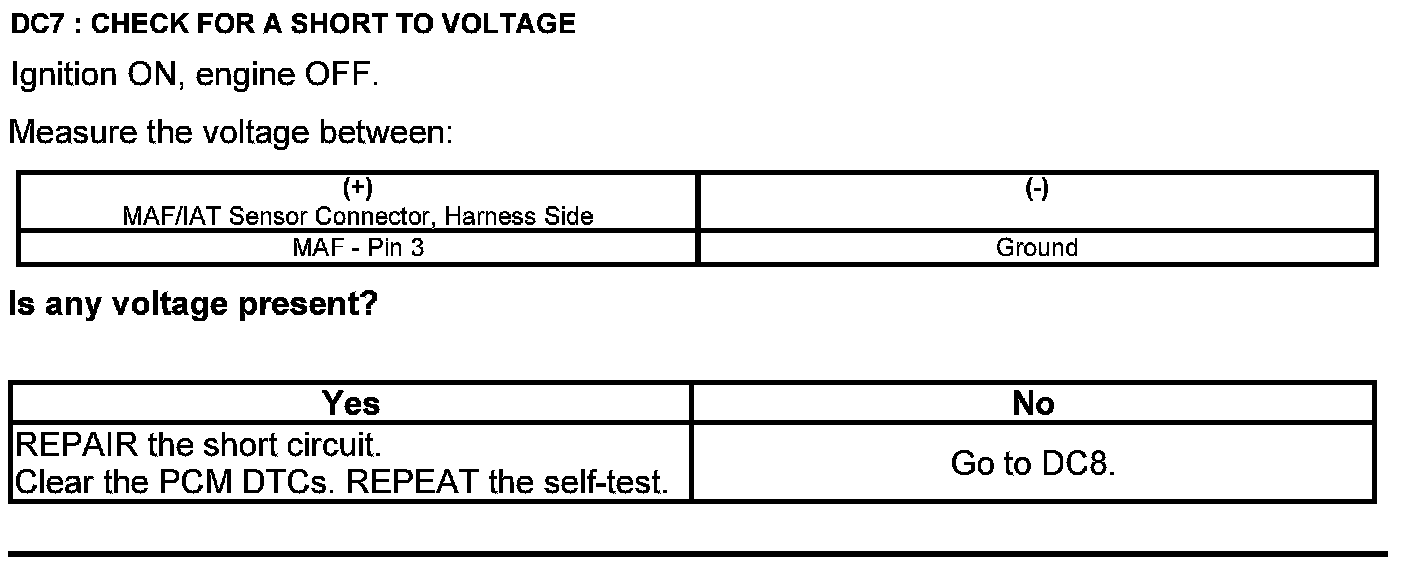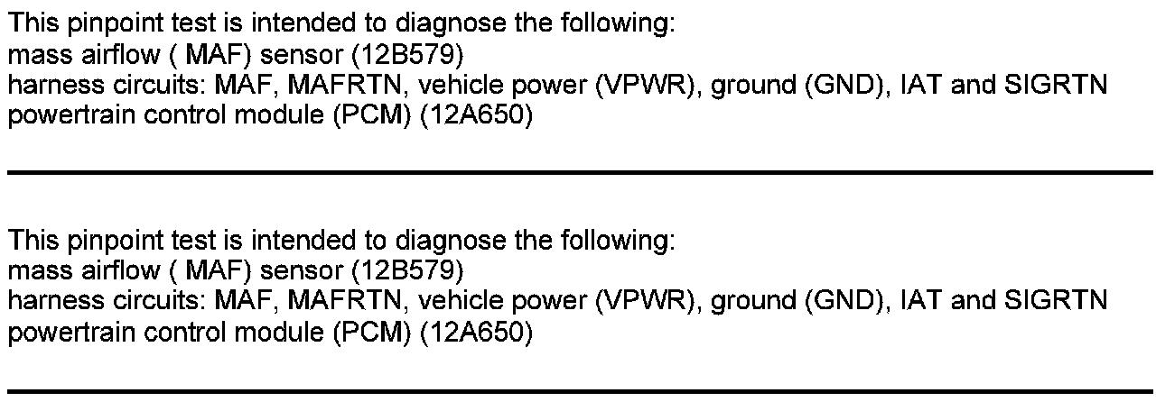 Home >> Ford >> 2012 >> Edge AWD V6-3.7L >> Repair and Diagnosis >> Powertrain Management >> Computers and Control Systems >> Testing and Inspection >> Pinpoint Tests >> Test DC: Mass Airflow (MAF) Sensor