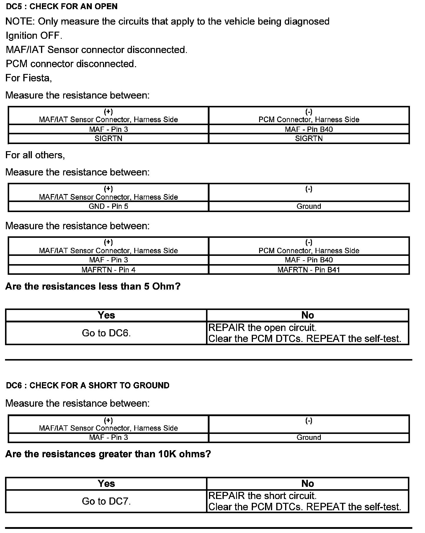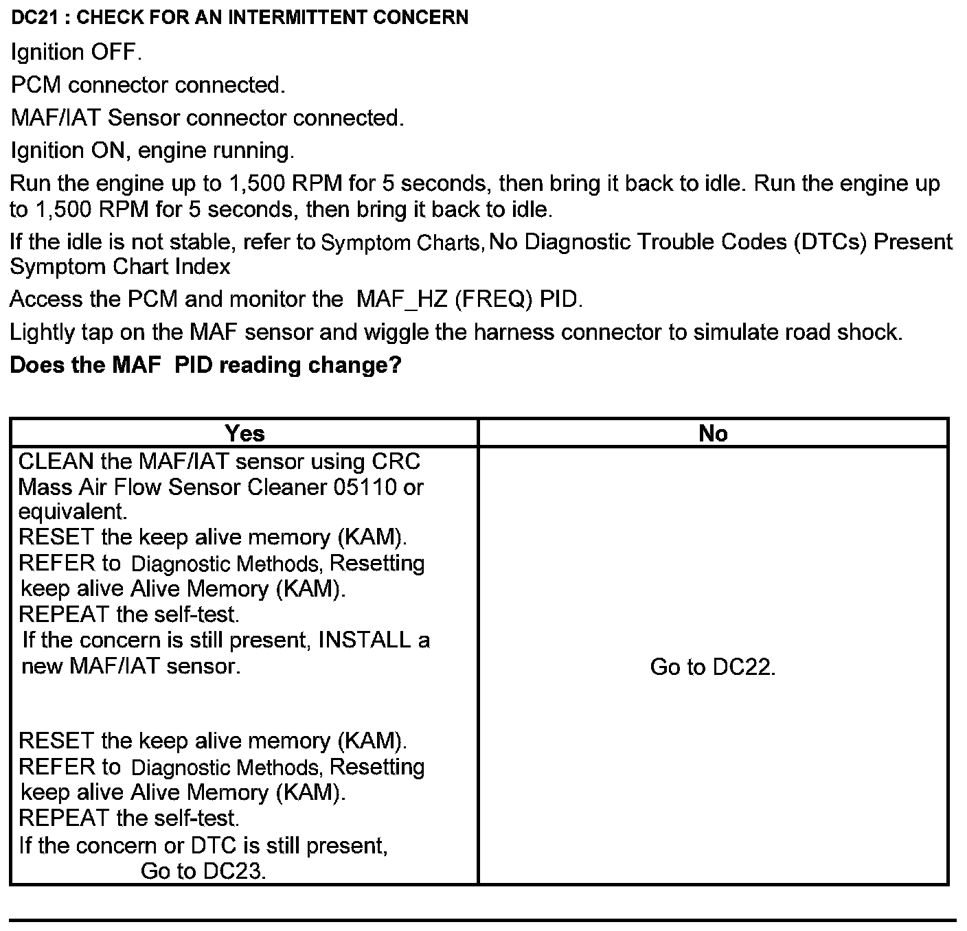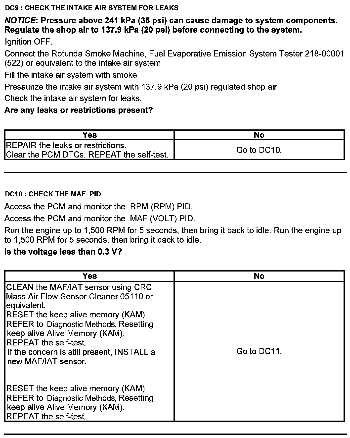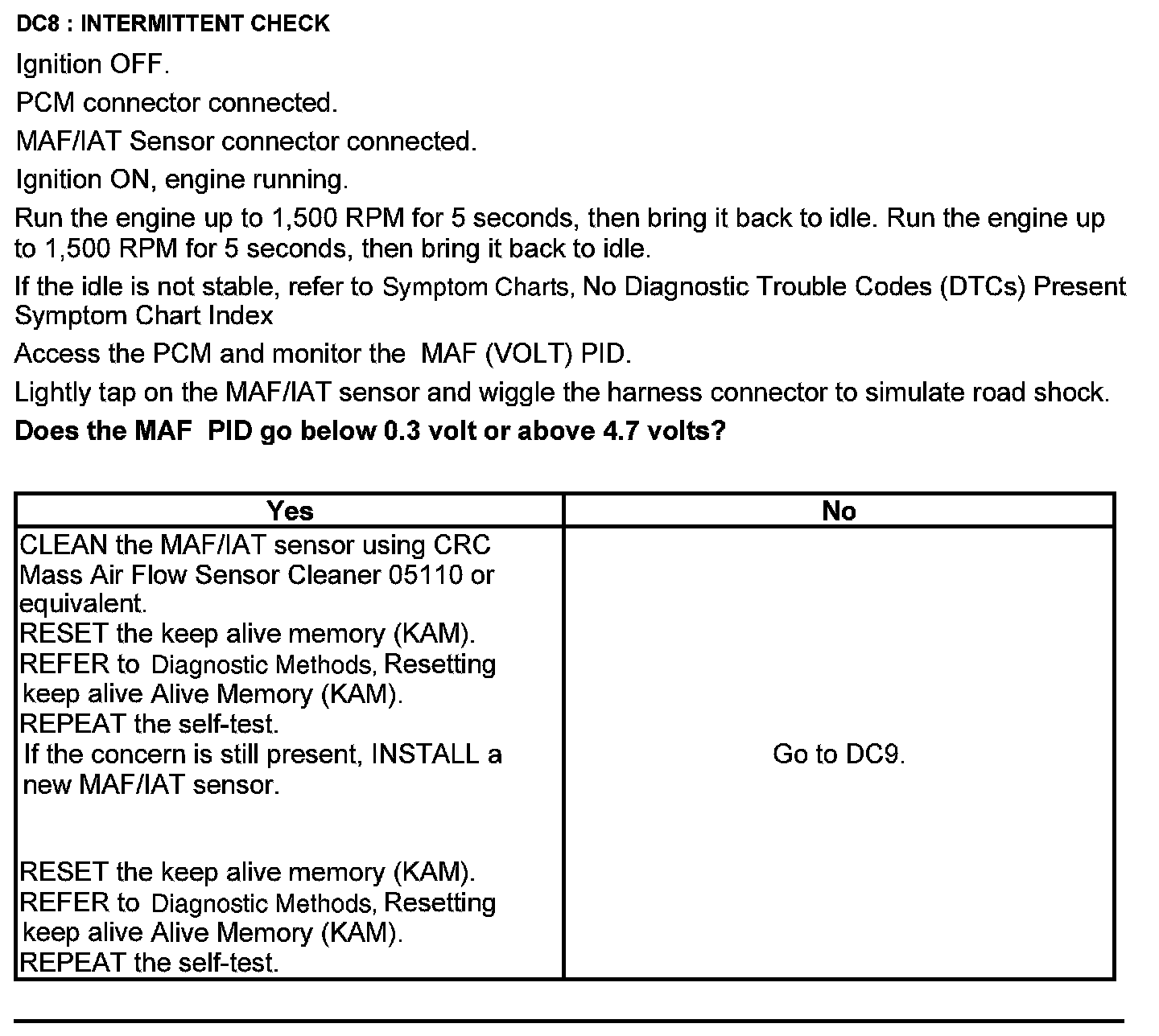 Home >> Ford >> 2012 >> Edge AWD V6-3.7L >> Repair and Diagnosis >> Powertrain Management >> Computers and Control Systems >> Testing and Inspection >> Pinpoint Tests >> Test DC: Mass Airflow (MAF) Sensor