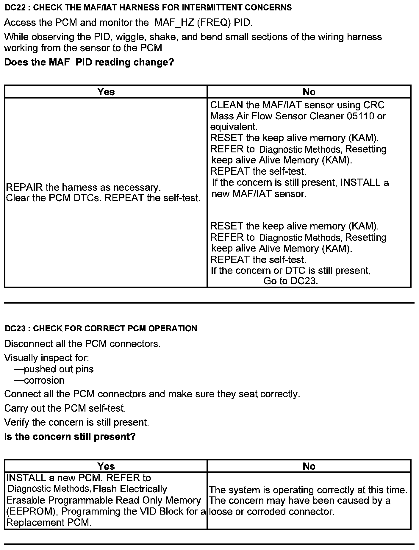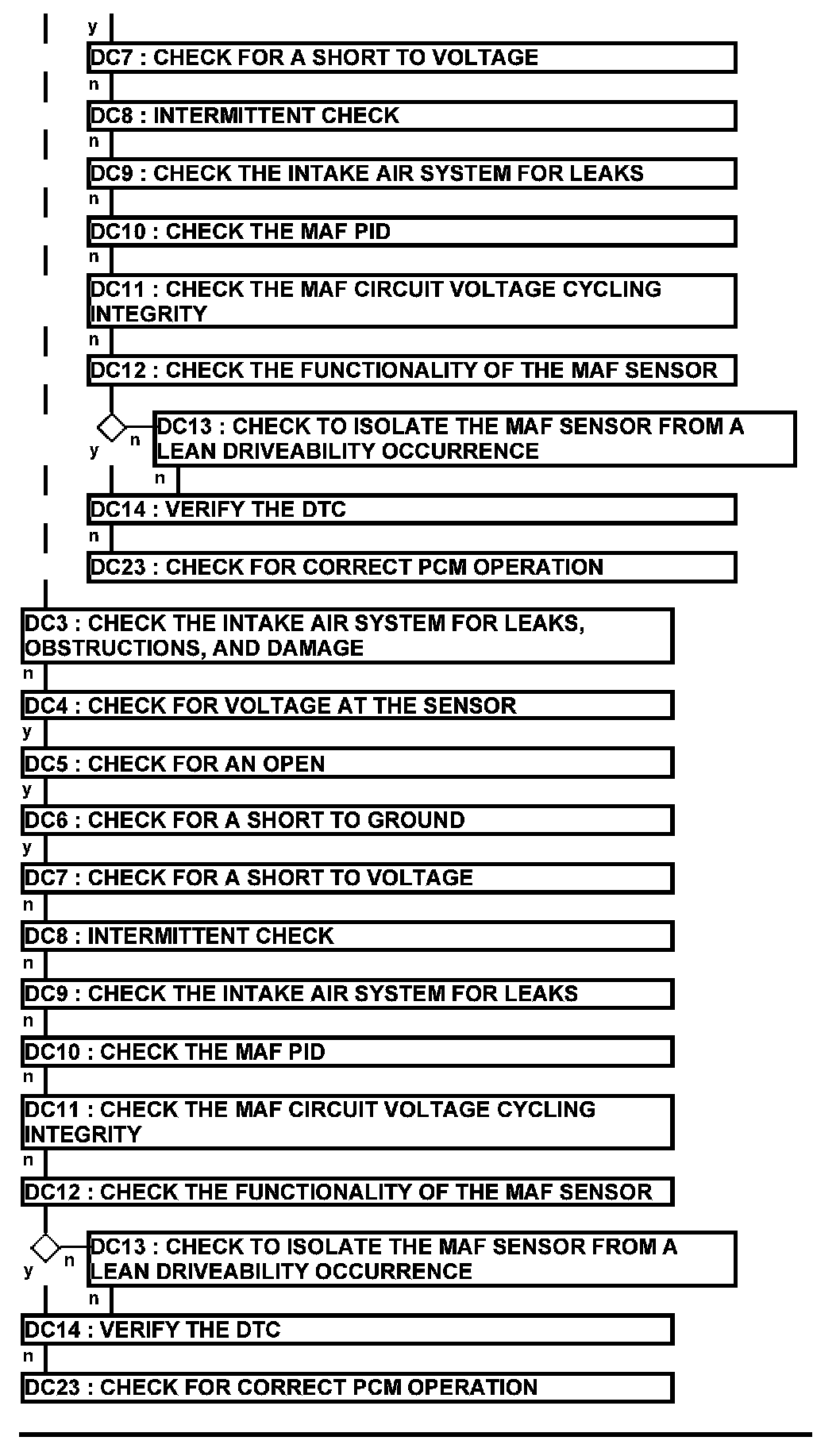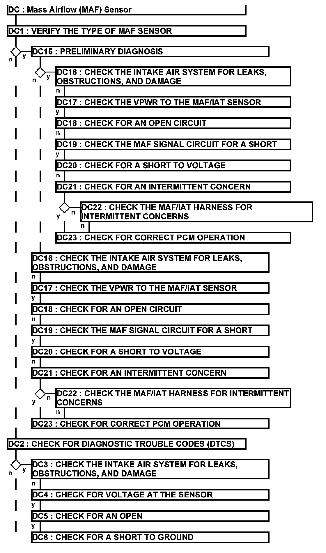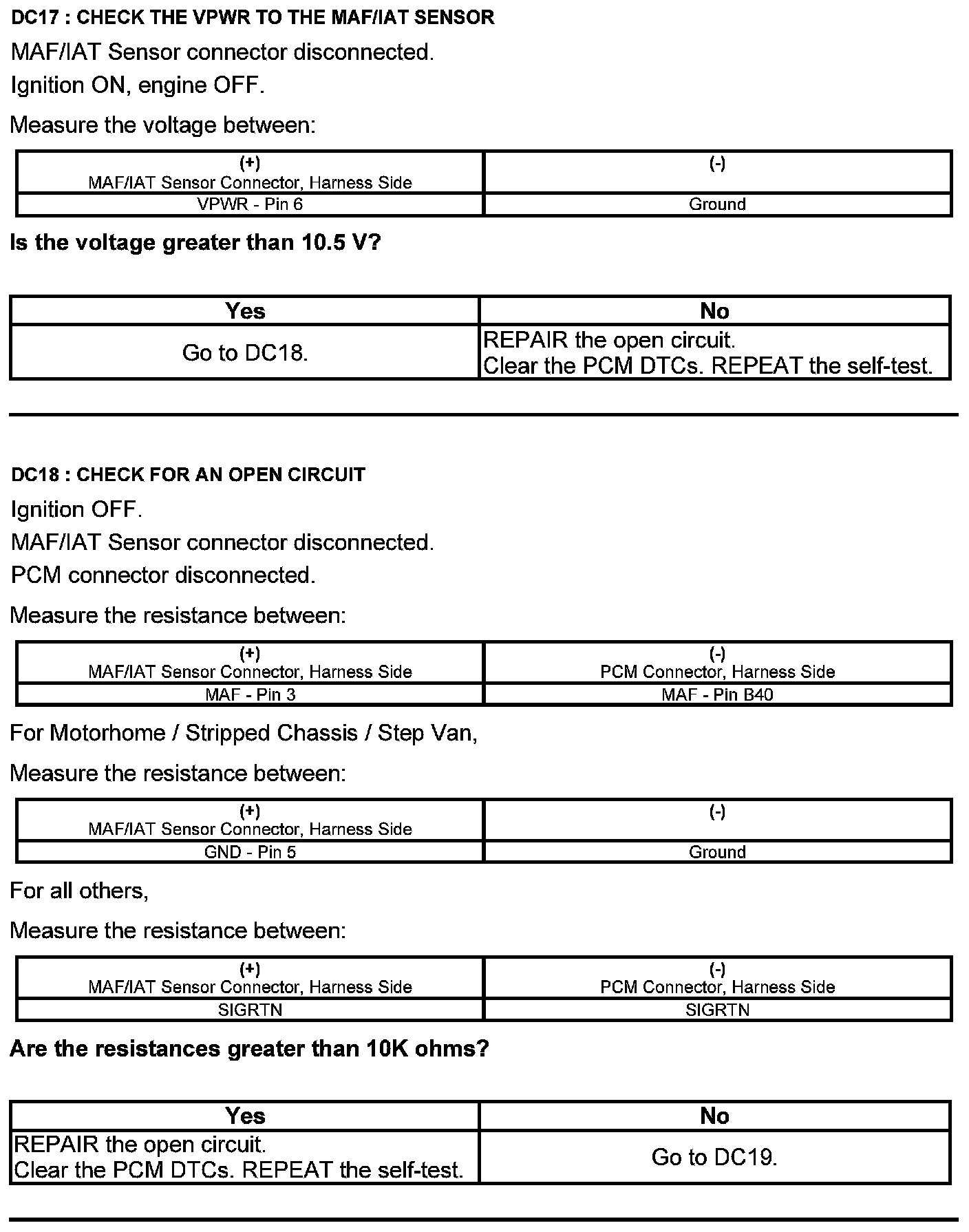 Home >> Ford >> 2012 >> Edge AWD V6-3.7L >> Repair and Diagnosis >> Powertrain Management >> Computers and Control Systems >> Testing and Inspection >> Pinpoint Tests >> Test DC: Mass Airflow (MAF) Sensor