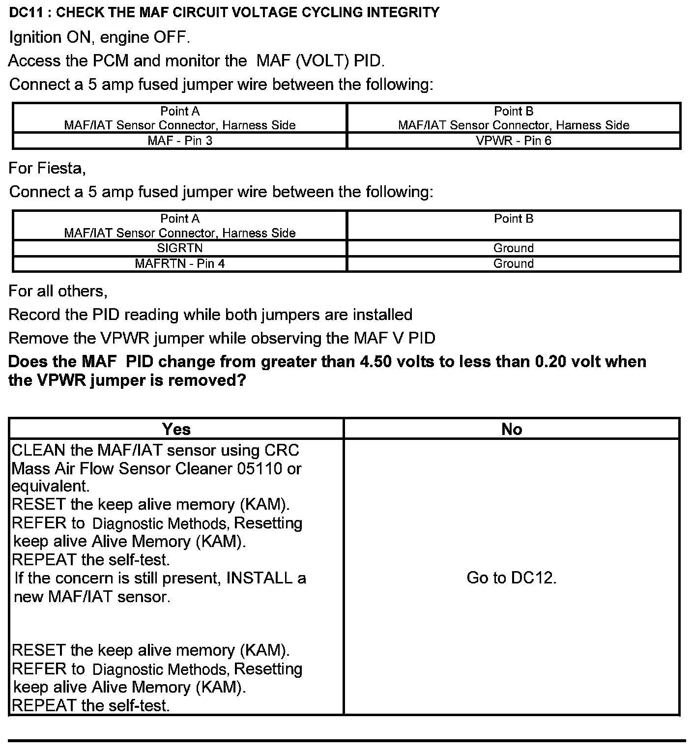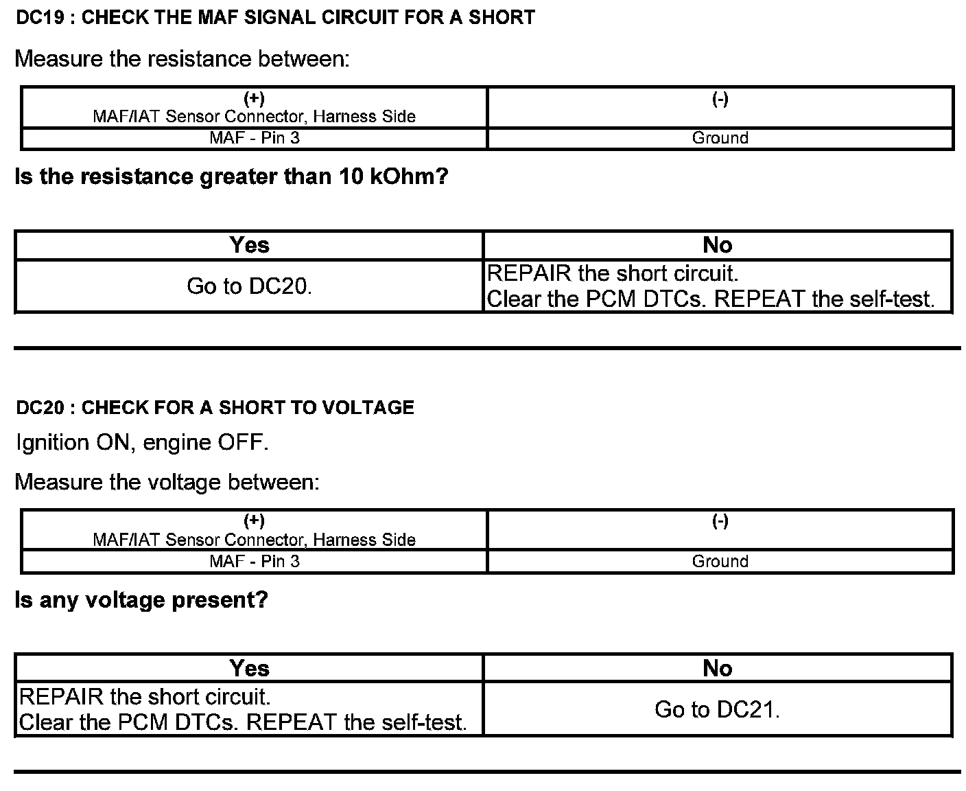 Test DC: Mass Airflow (MAF) Sensor