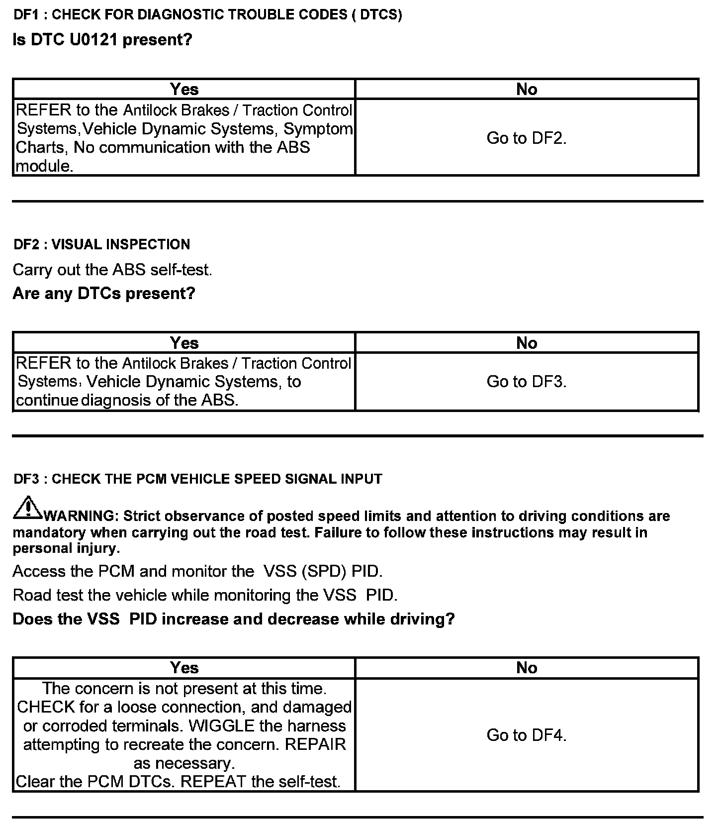 Test DF: Vehicle Speed Circuit (VSC) Check