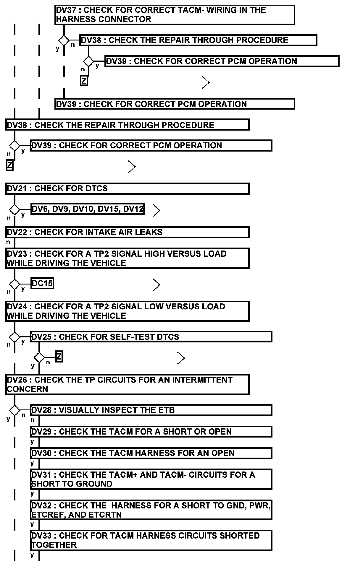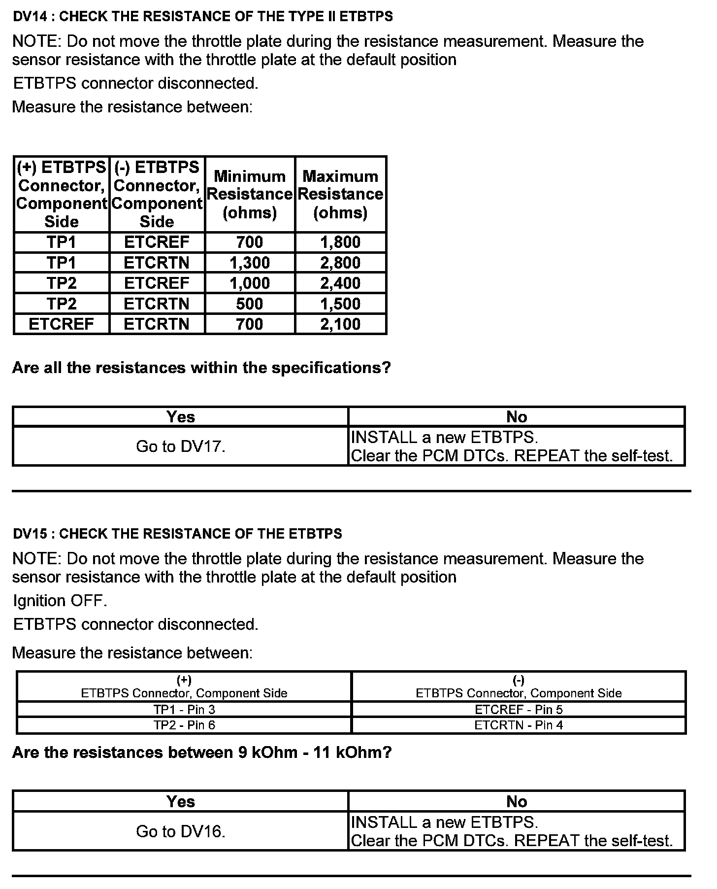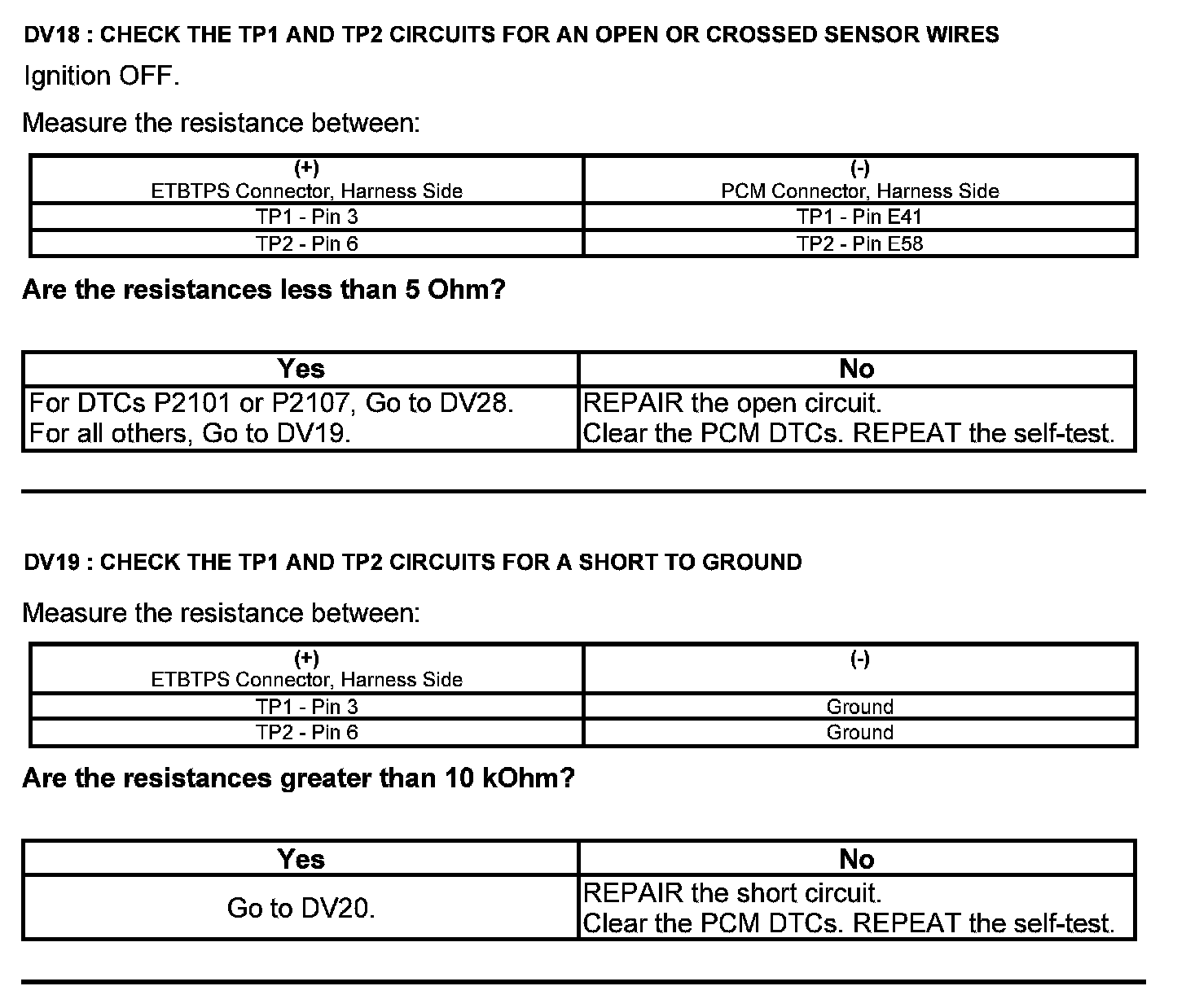 Home >> Ford >> 2012 >> Edge AWD V6-3.7L >> Repair and Diagnosis >> Powertrain Management >> Computers and Control Systems >> Testing and Inspection >> Pinpoint Tests >> Test DV: Throttle Body Assembly Electronic Throttle Control (ETC)