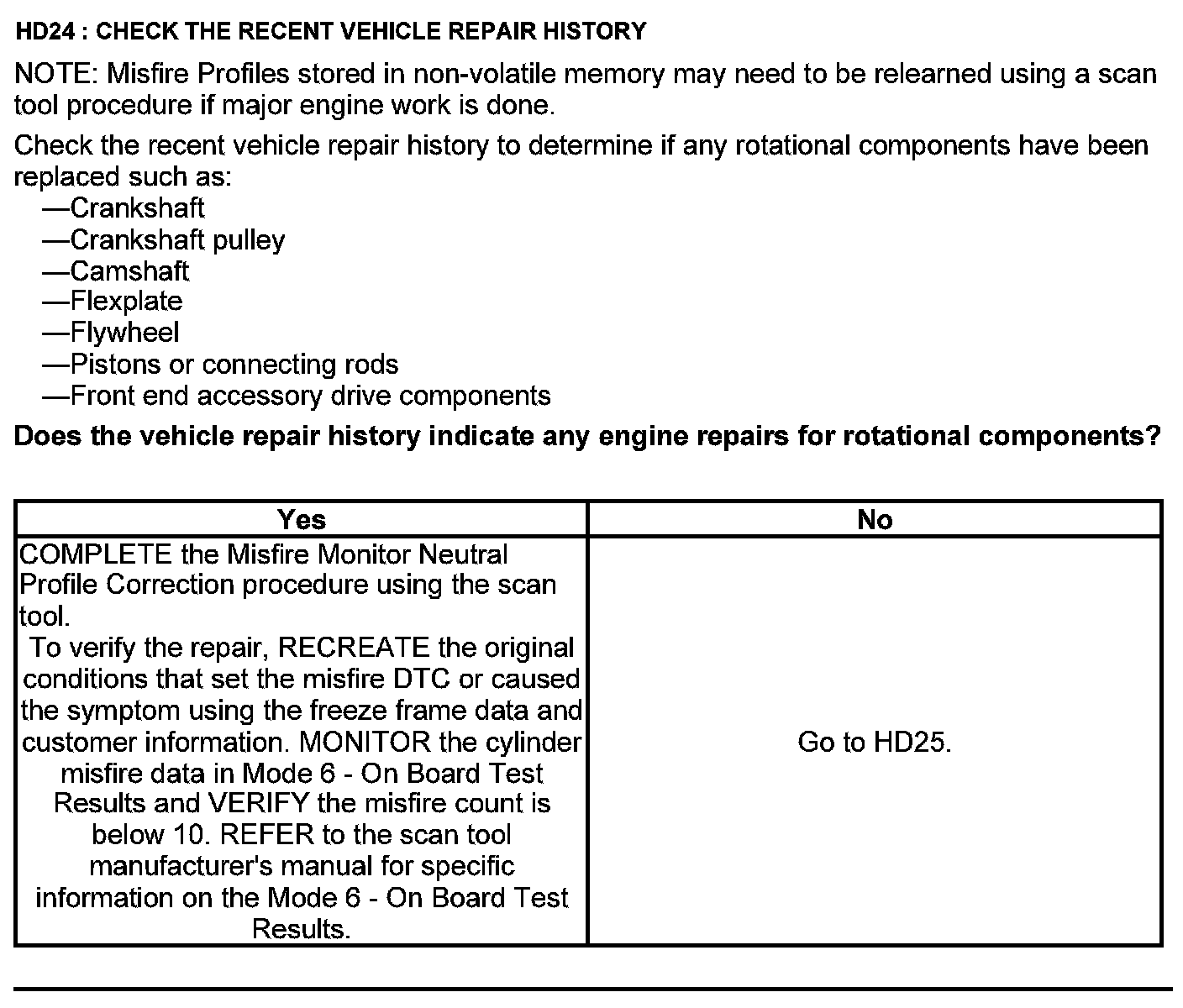 Home >> Ford >> 2012 >> Edge AWD V6-3.7L >> Repair and Diagnosis >> Powertrain Management >> Computers and Control Systems >> Testing and Inspection >> Pinpoint Tests >> Test HD: Misfire Detection Monitor