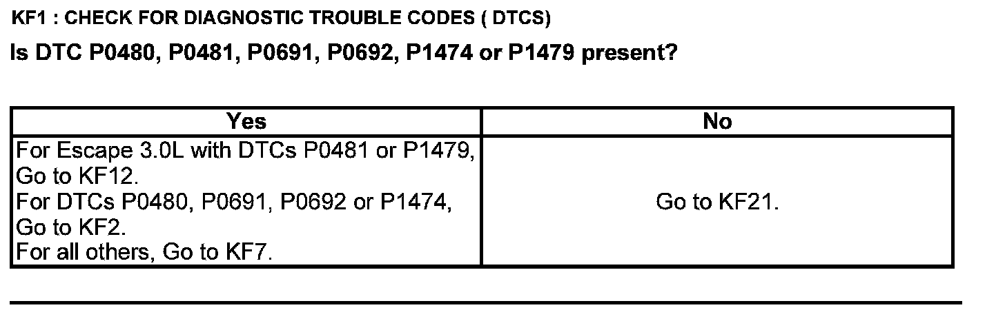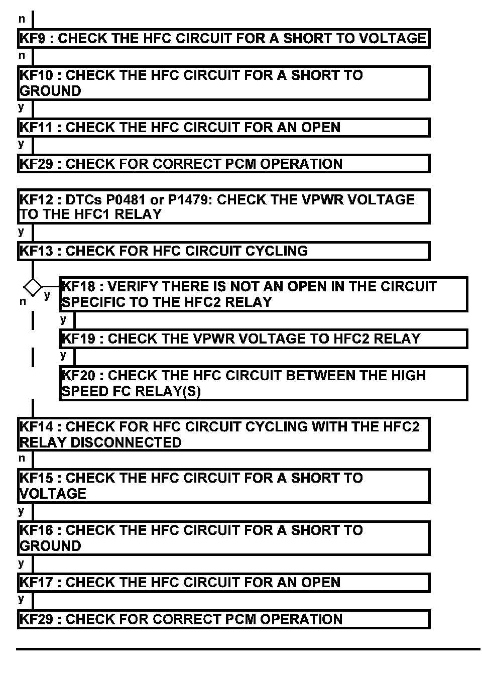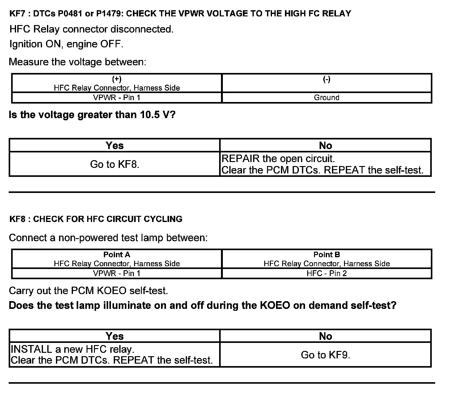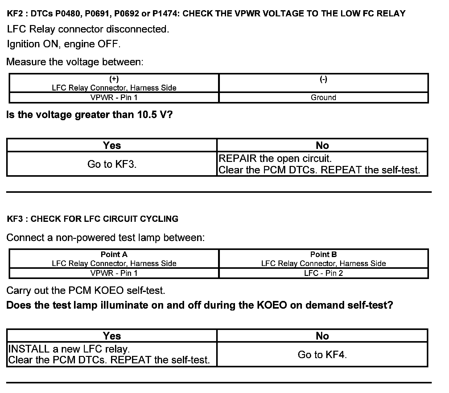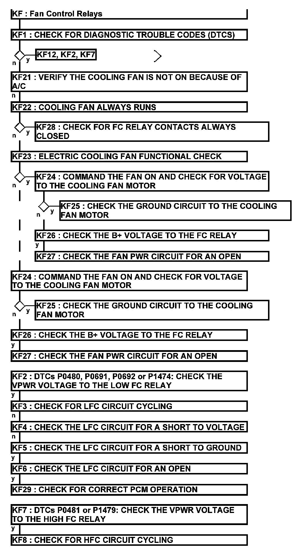 Home >> Ford >> 2012 >> Edge AWD V6-3.7L >> Repair and Diagnosis >> Powertrain Management >> Computers and Control Systems >> Testing and Inspection >> Pinpoint Tests >> Test KF: Fan Control Relays