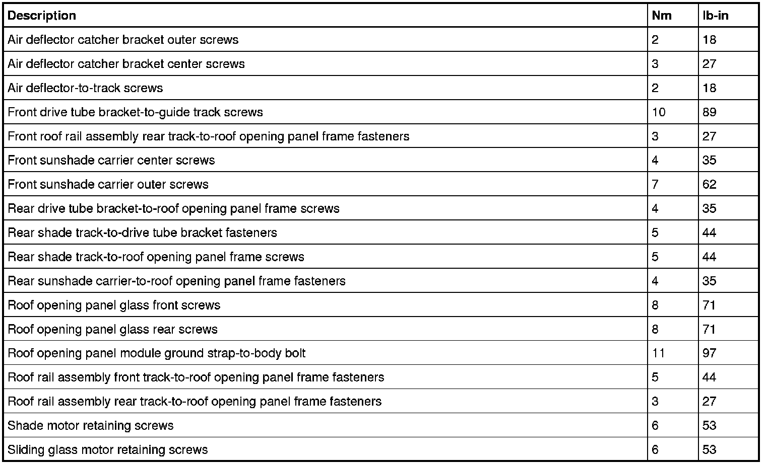 Torque Specifications