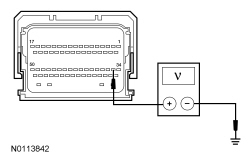 - For 2.0L equipped vehicles, measure the voltage between the PCM C1381B-14, circuit CE436 (VT/OG), harness side and ground.
