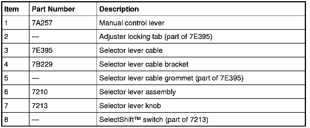 - a selector lever cable that connects the transaxle manual control lever to the selector lever assembly.
