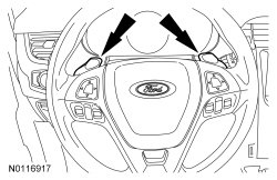 When the selector lever is moved to the M position, the driver can shift the transaxle manually using the steering wheel mounted paddle shifters.
