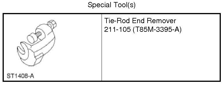 Special Tool(s): Tie Rod End Remover 211-105 (T85M-3395-A).