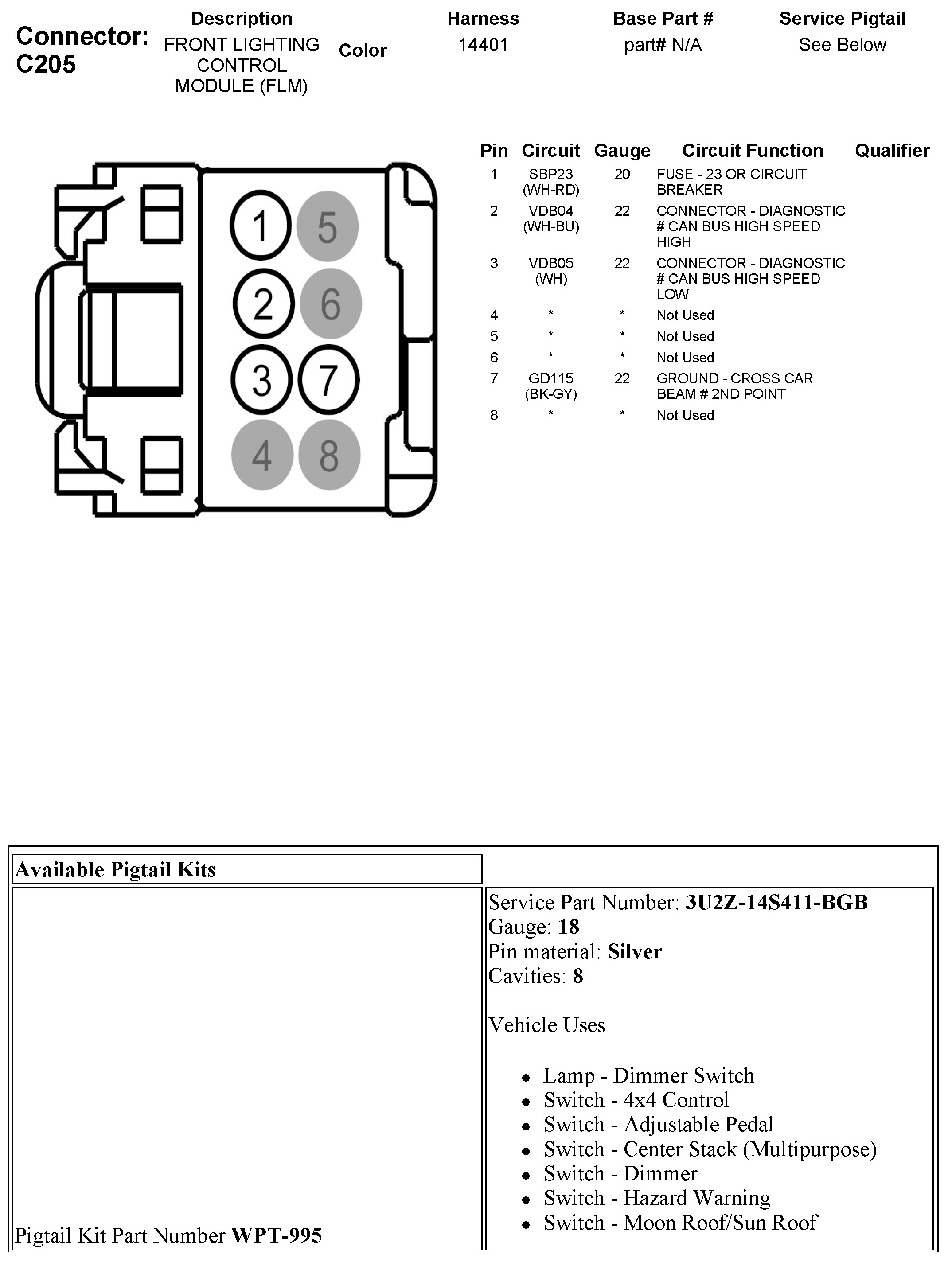 C205 Front Lighting Control Module (FLM)