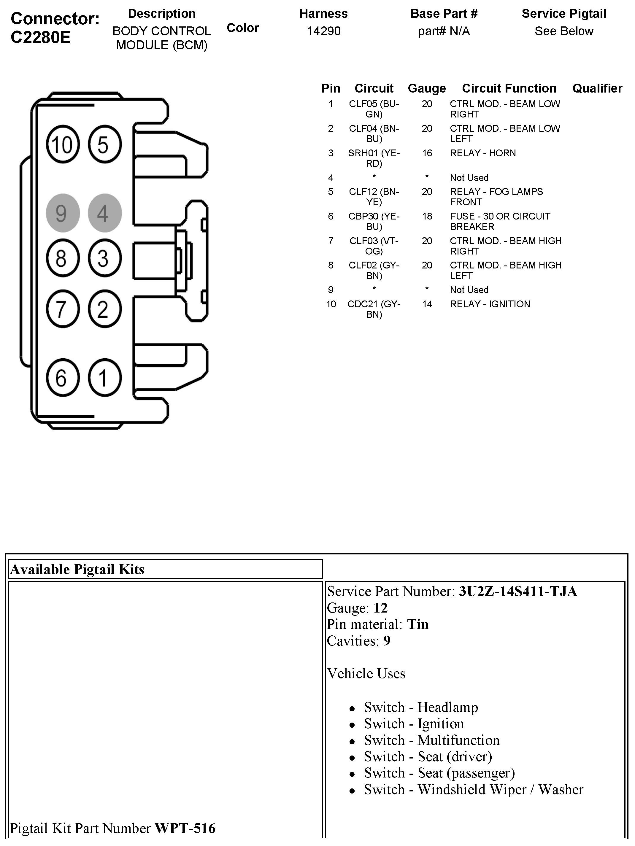 C2280E Body Control Module (BCM)