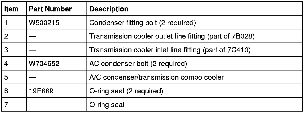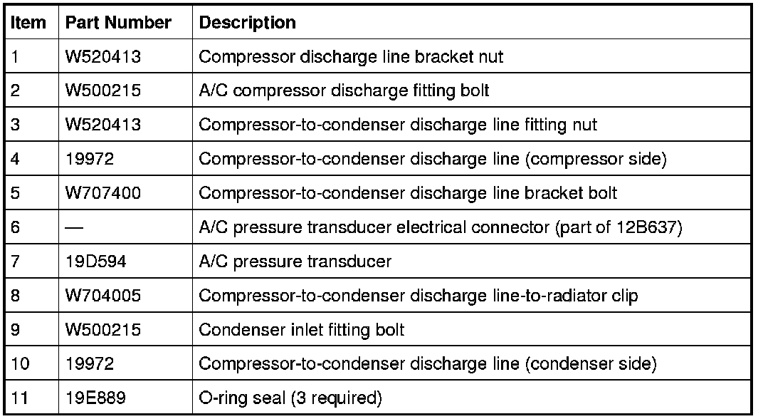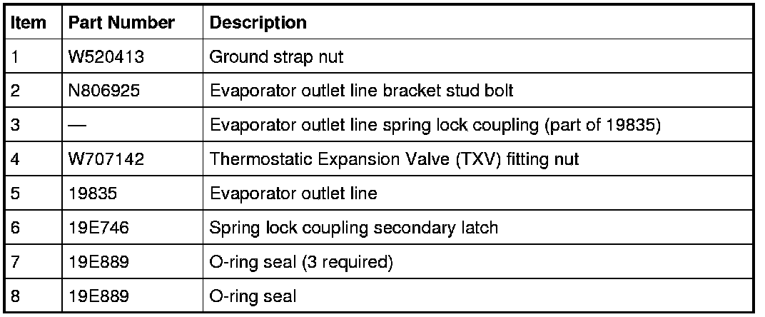 1. NOTE: The O-ring seals used on this vehicle are not interchangeable with all similarly sized O-ring seals used on other Ford products. Use only the O-ring seals that are specified for this vehicle. Refer to the Ford Catalog Advantage(TM).