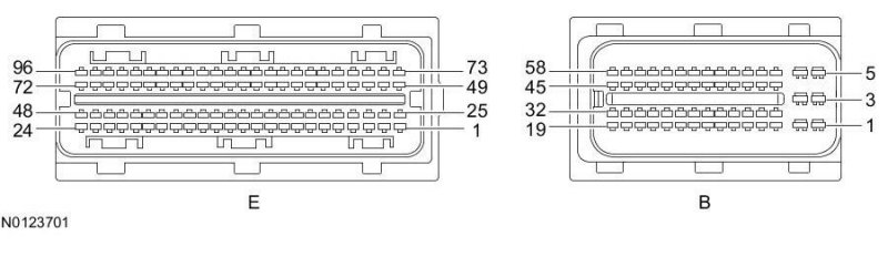 Powertrain Control Module (PCM) Connector - For PCM connector views or reference values, refer to Reference Values.