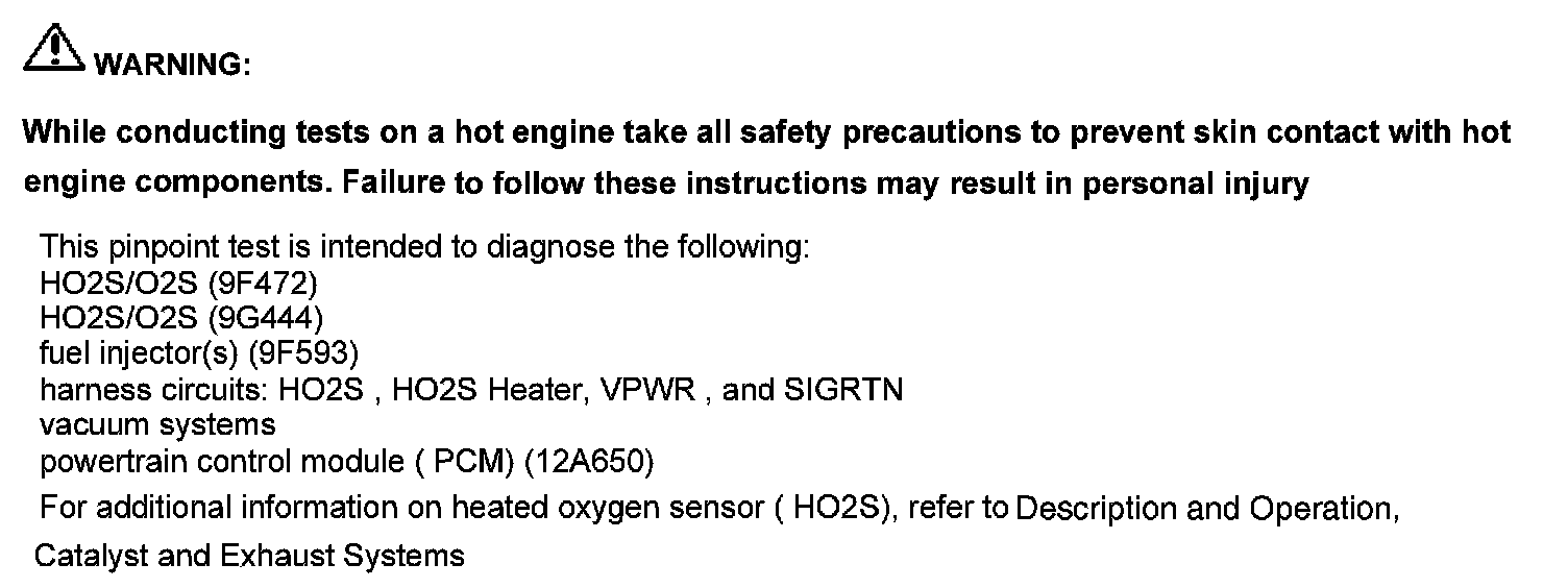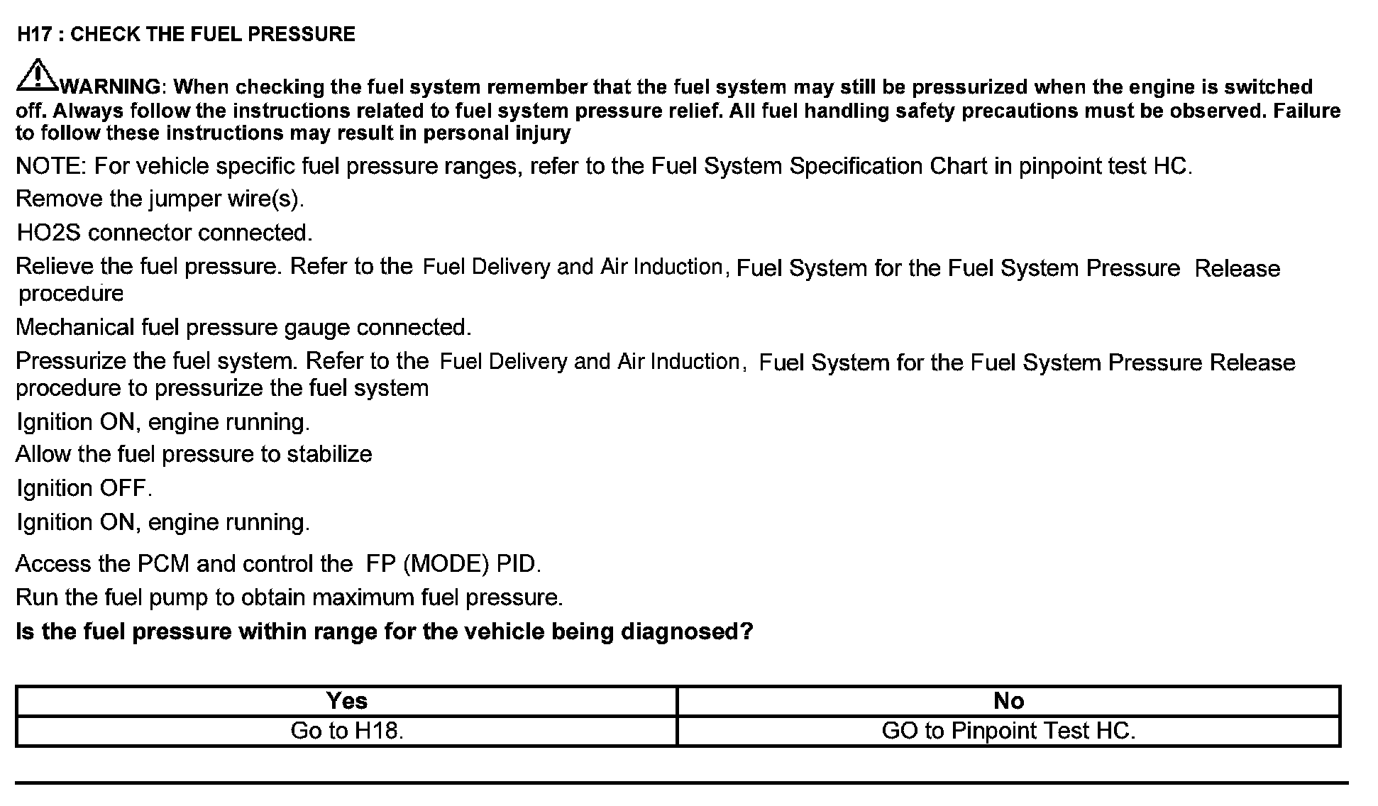 Home >> Ford >> 2012 >> Edge FWD L4-2.0L Turbo >> Repair and Diagnosis >> Powertrain Management >> Computers and Control Systems >> Testing and Inspection >> Pinpoint Tests >> Test H: Fuel Control