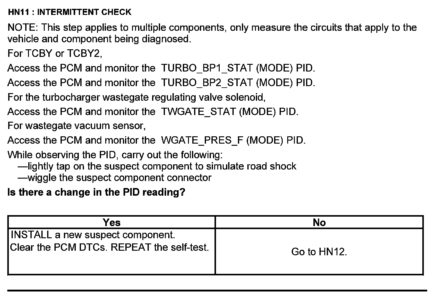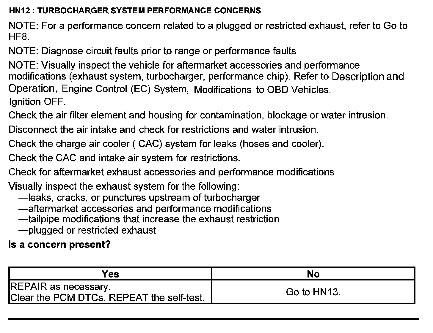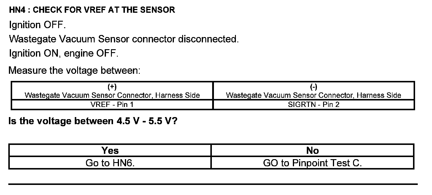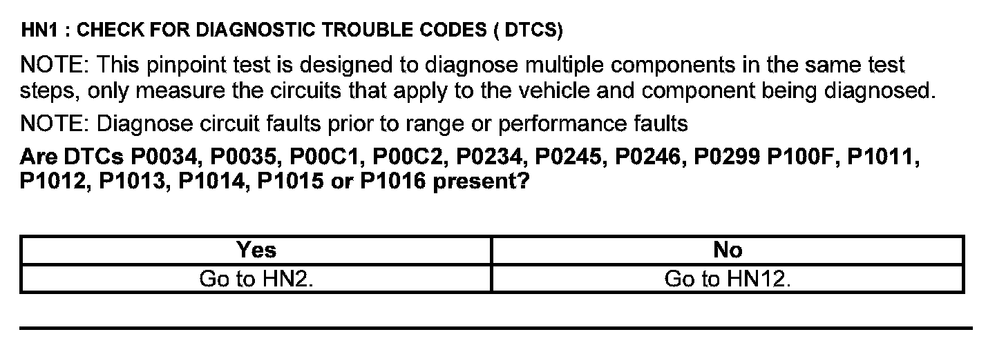 Home >> Ford >> 2012 >> Edge FWD L4-2.0L Turbo >> Repair and Diagnosis >> Powertrain Management >> Computers and Control Systems >> Testing and Inspection >> Pinpoint Tests >> Test HN: Turbocharger System