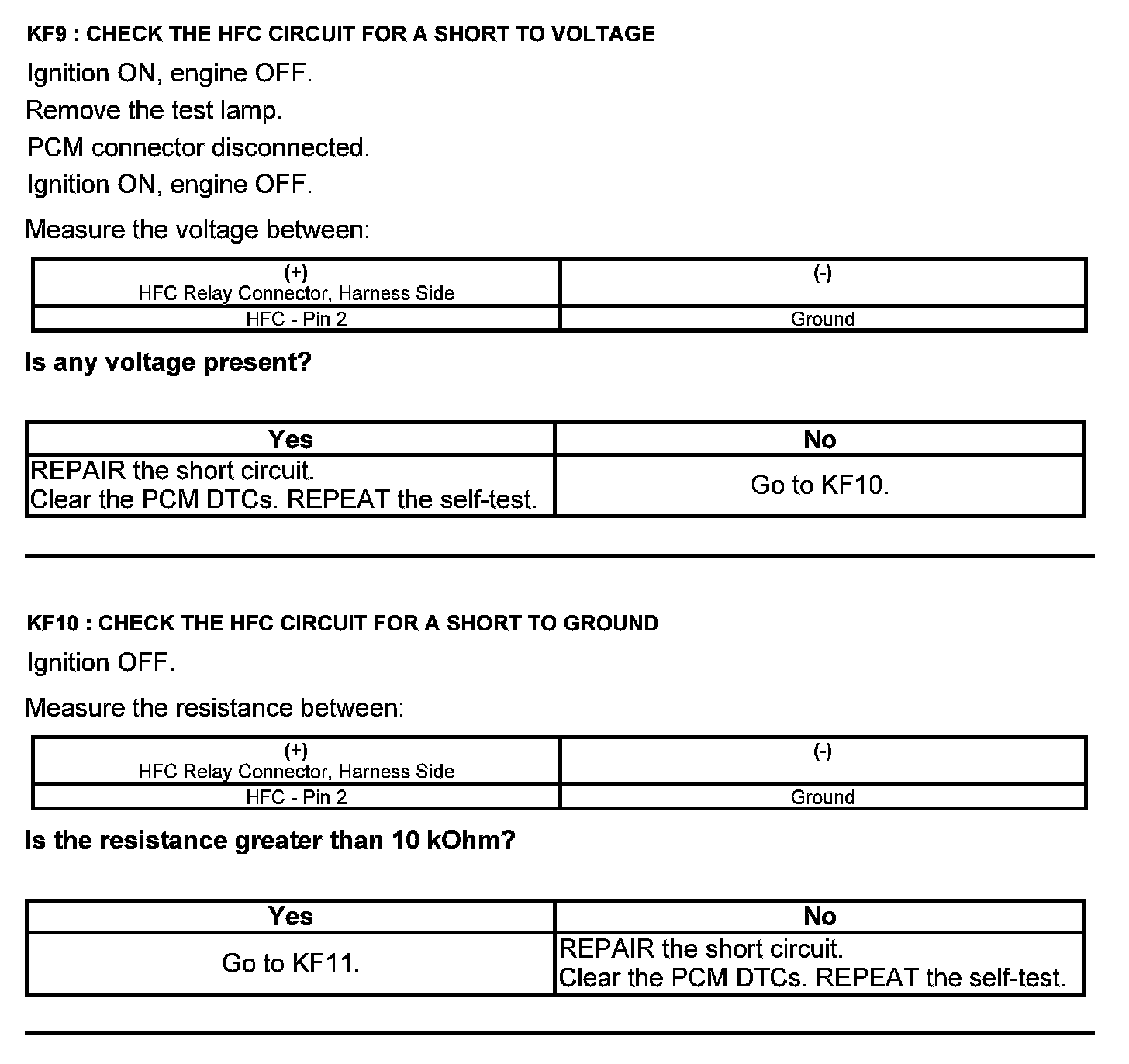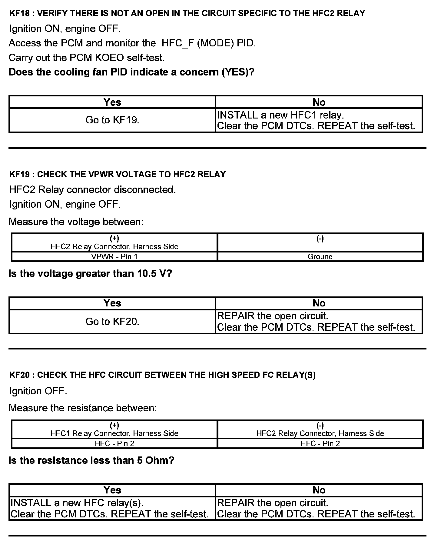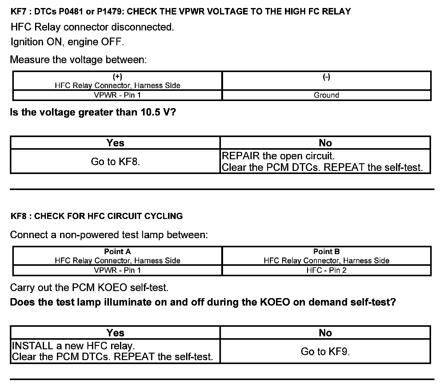 Home >> Ford >> 2012 >> Edge FWD L4-2.0L Turbo >> Repair and Diagnosis >> Powertrain Management >> Computers and Control Systems >> Testing and Inspection >> Pinpoint Tests >> Test KF: Fan Control Relays