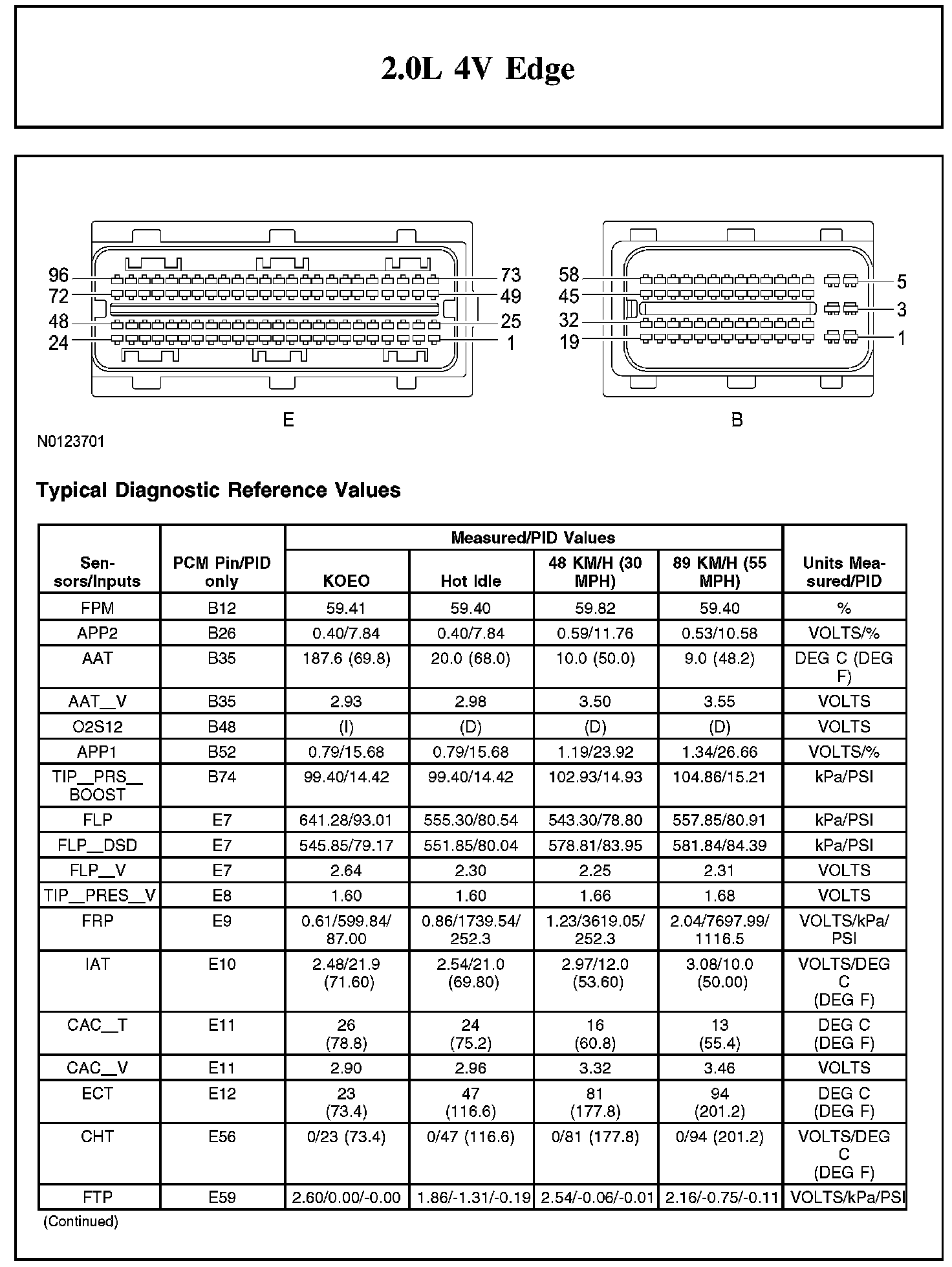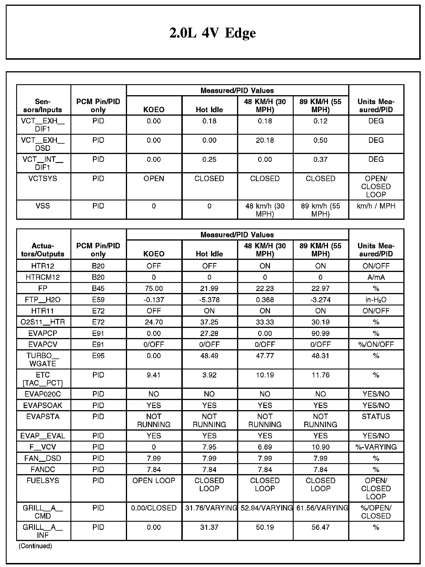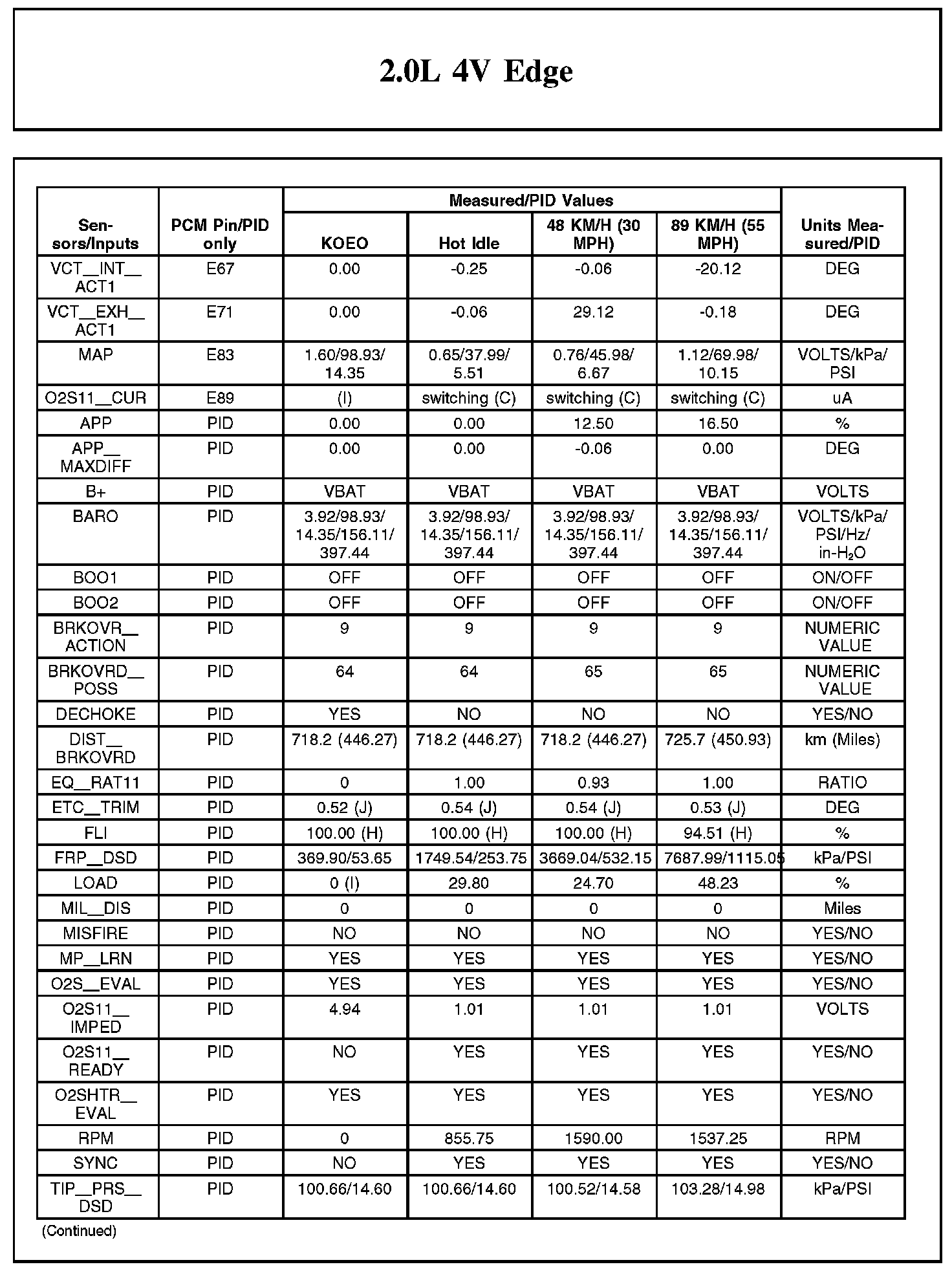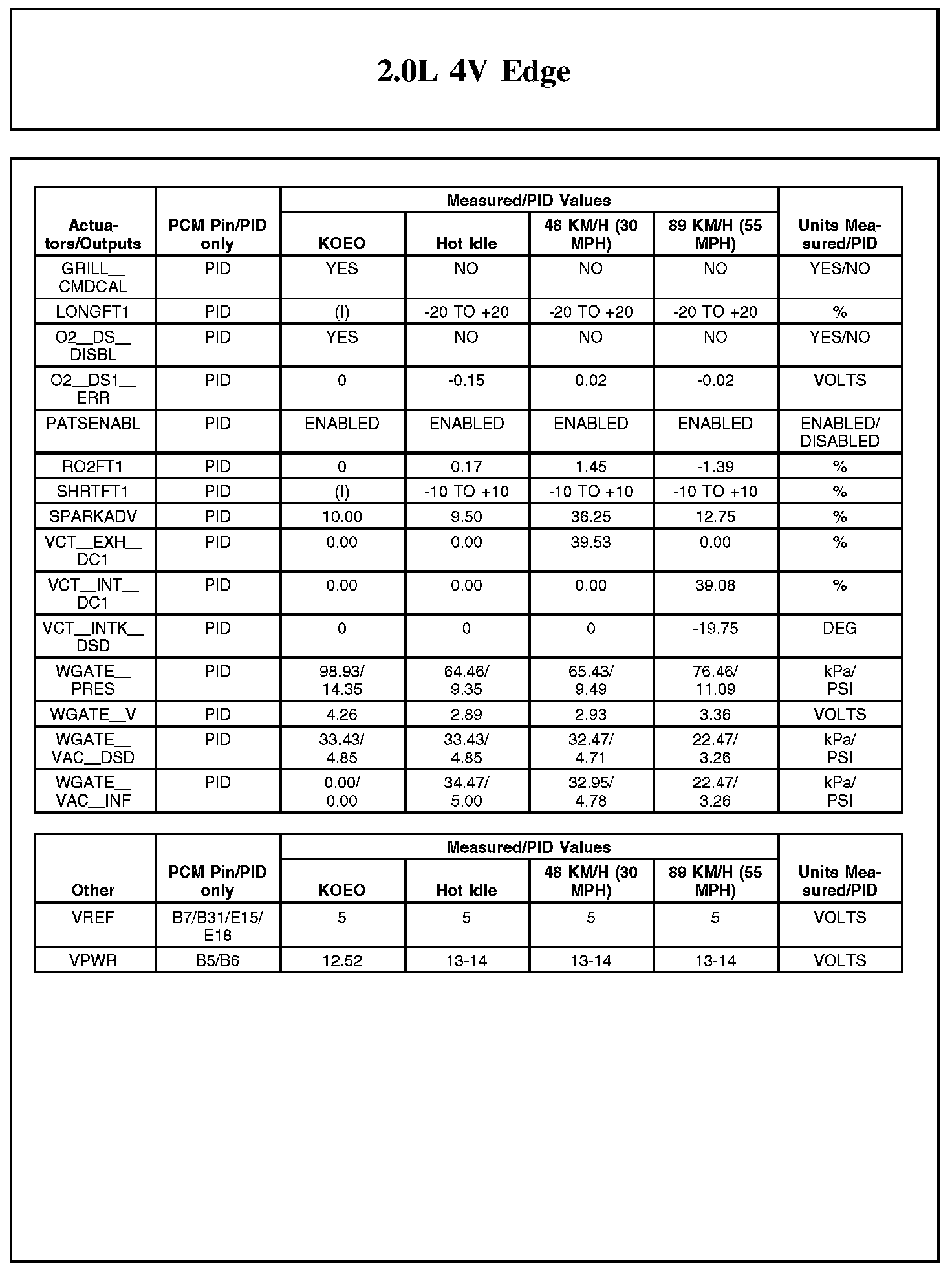 Home >> Ford >> 2012 >> Edge FWD L4-2.0L Turbo >> Repair and Diagnosis >> Powertrain Management >> Computers and Control Systems >> Testing and Inspection >> Scan Tool Testing and Procedures >> Typical Diagnostic Reference Values