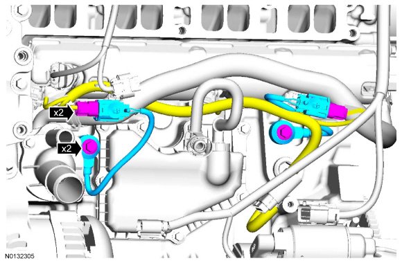 2. NOTICE: The RH KS (Knock Sensor) must be installed in the 6 o'clock position and the LH KS (Knock Sensor) must be installed in the 3 o'clock position. Failure to follow these instructions may result in damage to the engine.